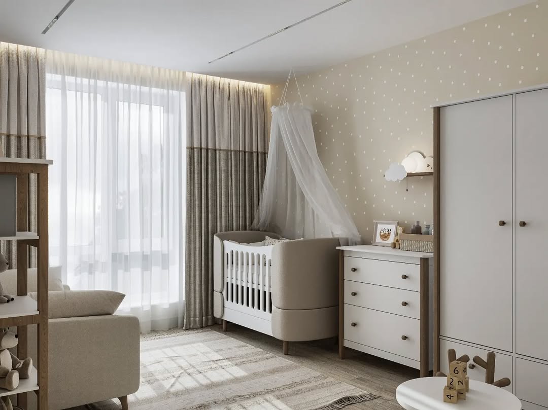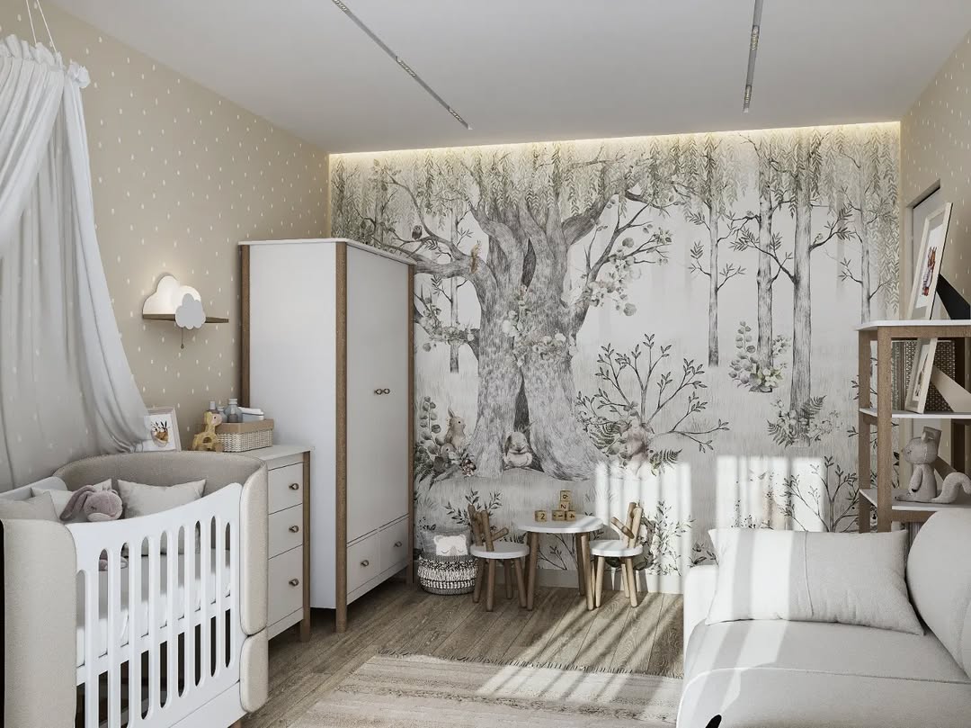 Обладатели этого проекта только планируют стать родителями, поэтому необходимо было создать детскую комнату, которая подошла бы как мальчику, так и девочке.