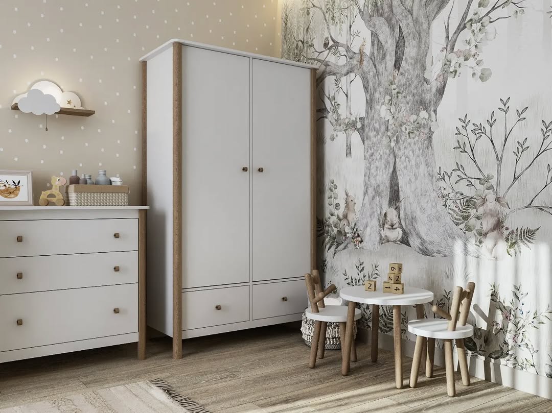 Здесь есть всё для комфортного времяпрепровождения мамы и малыша: чудесная кроватка-трансформер с маятником и мягкими бортиками, комод с пеленальным столиком, шкаф для первых нарядов и столик для первых рисунков, ну и, конечно, комфортный диван со спальным местом: мамы непременно согласятся, что это удобно!