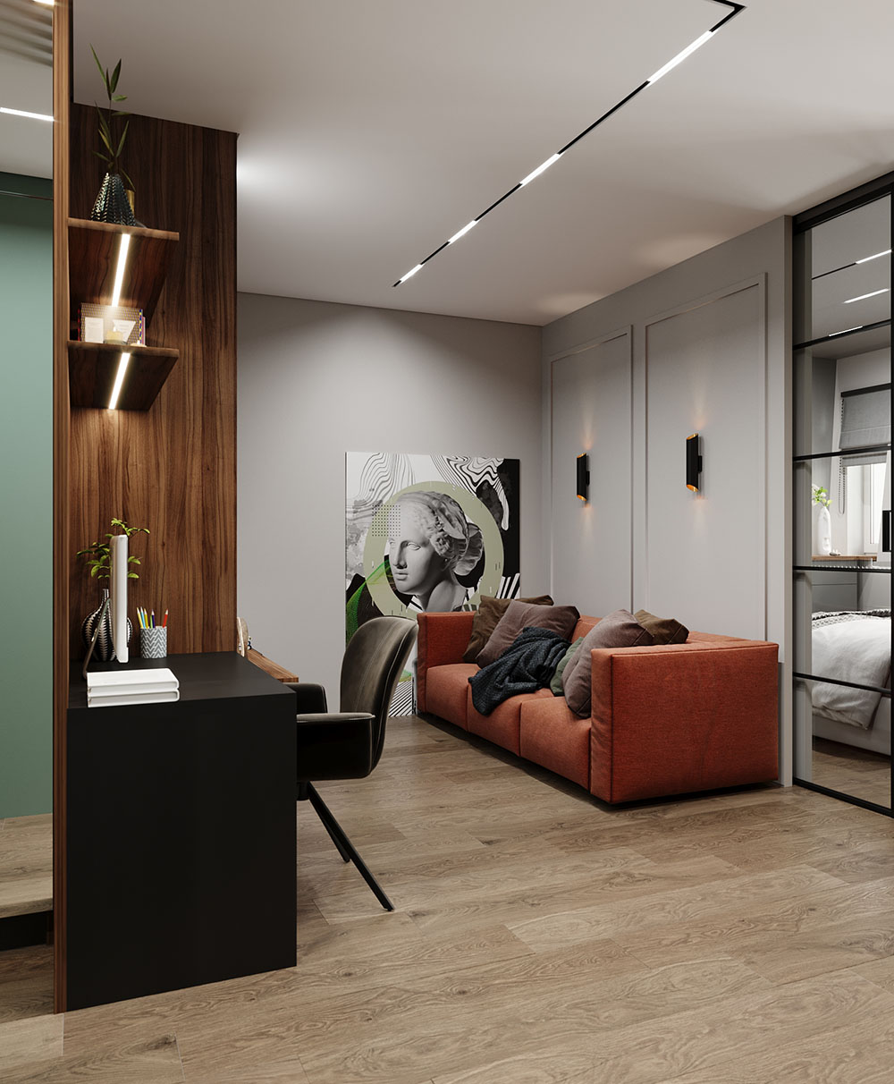 Представляем вам дизайнерский волборд «ANTIQUE» в интерьере этой однокомнатной квартиры. В этой необычной коллекции нам захотелось совместить то, что совмещать не принято или непривычно: любовь к аккуратной, тонкой в исполнении классической скульптуре и дерзкому, яркому, иногда даже агрессивному графическому дизайну. Смелые решения в пространствах интерьера и экстерьера отлично дополнят любые проекты - как квартир, так и общественных помещений.