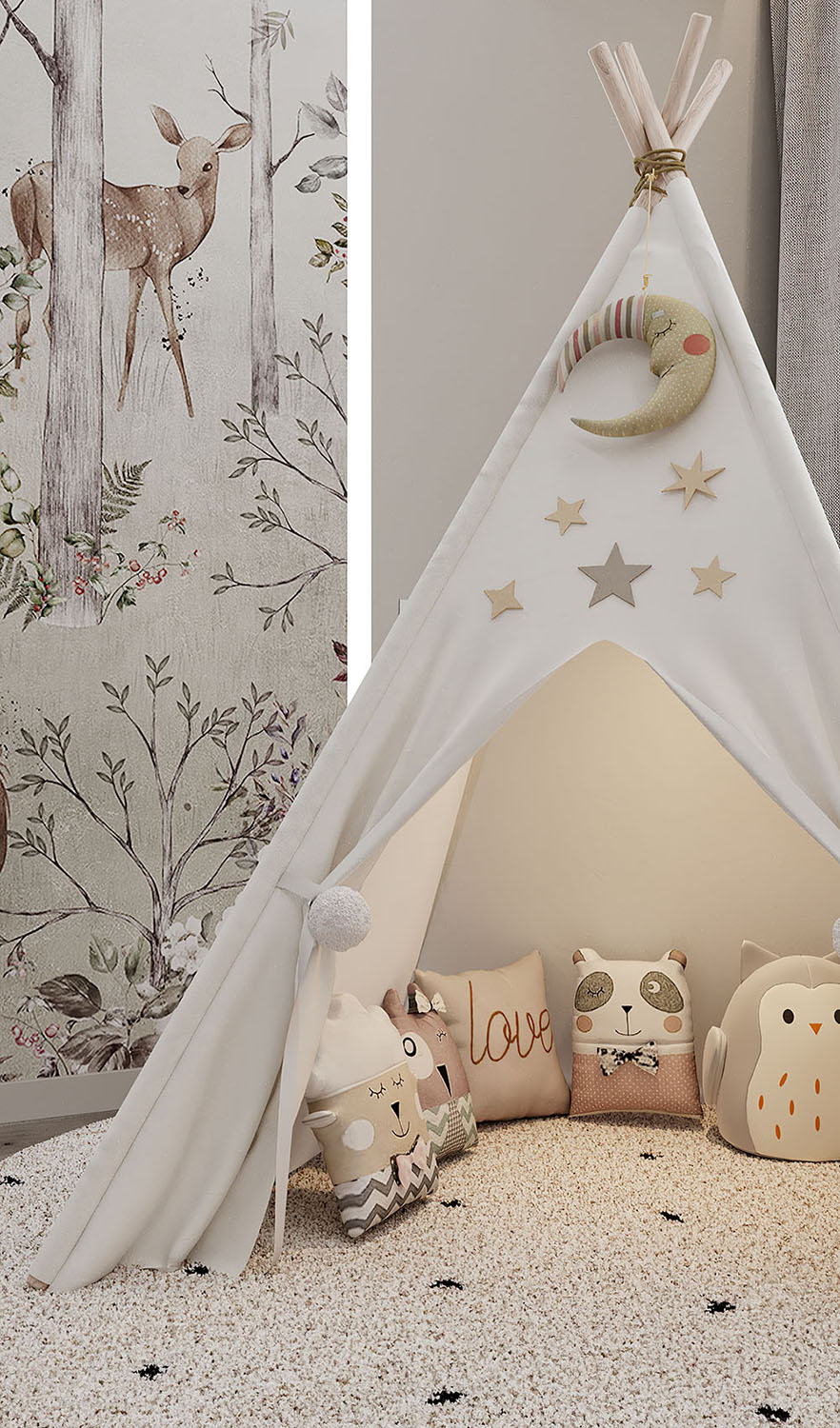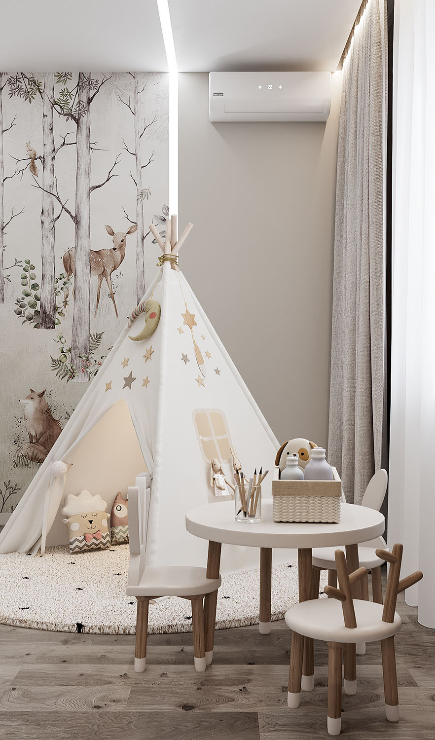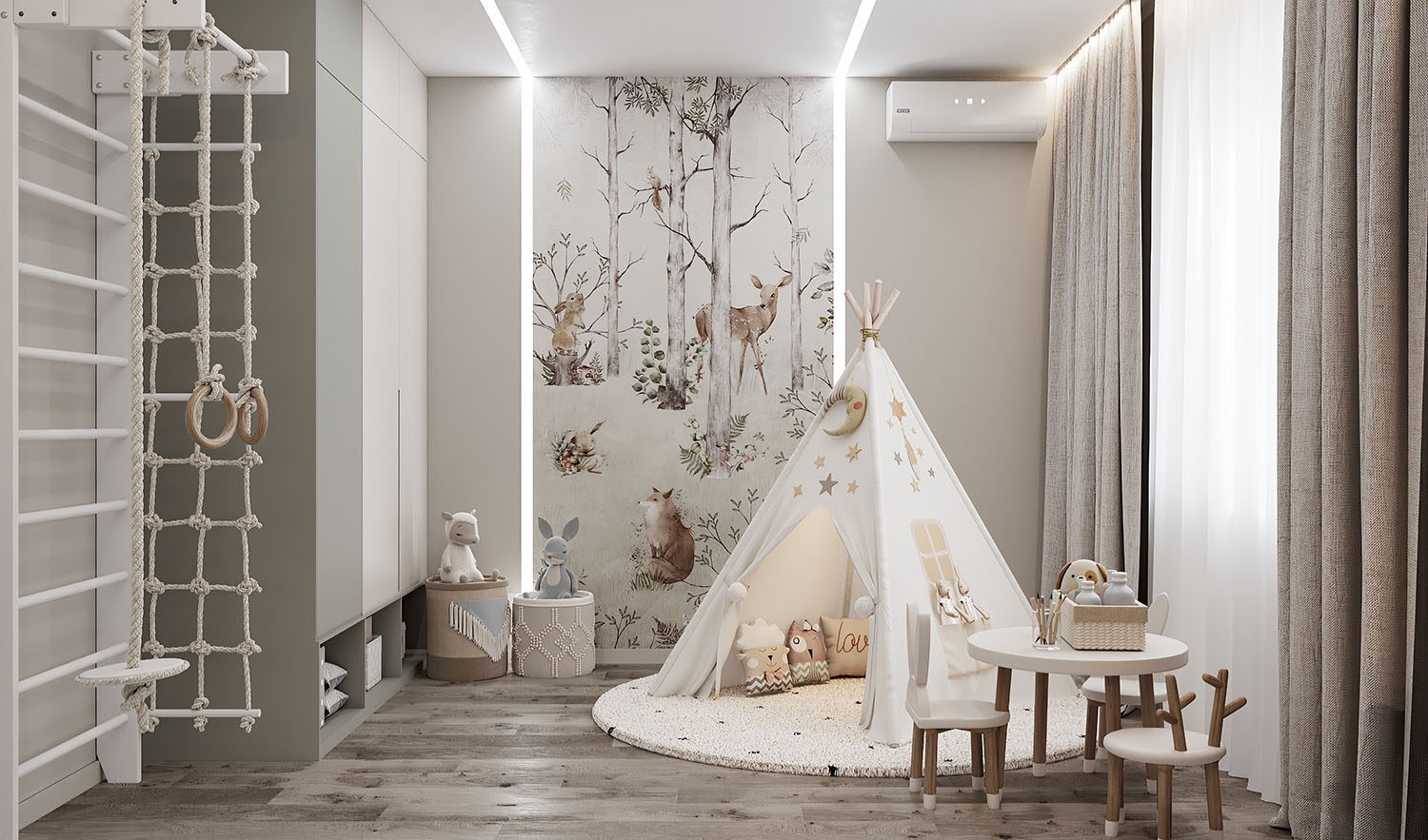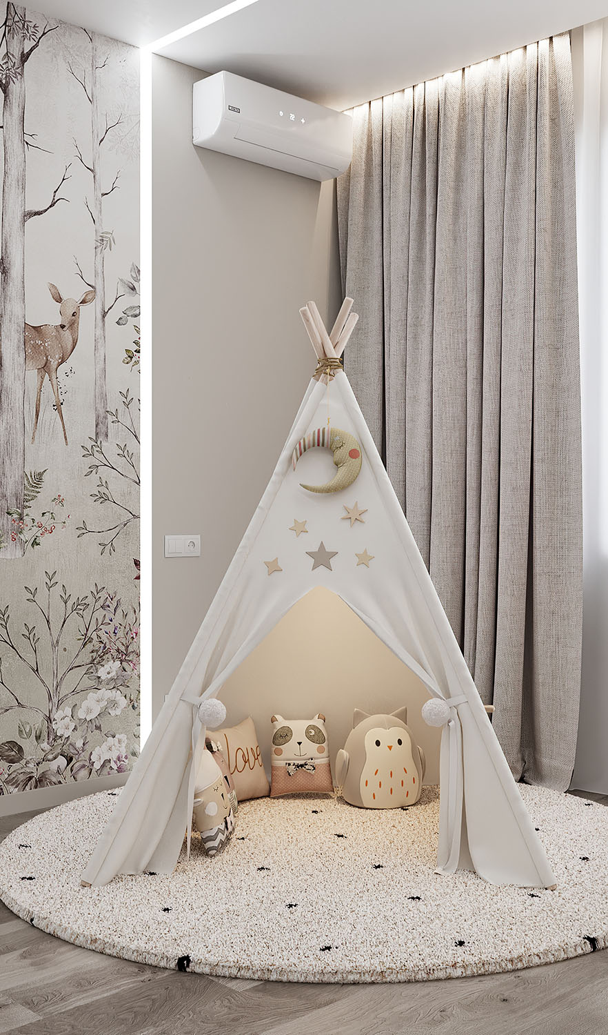 На площадях 18 м² расположились две детские со спальными местами, а также игровая площадью 16 м². Использованные коллекции идеально подошли под все пожелания заказчика и совсем скоро будут радовать своей красотой трех девочек.