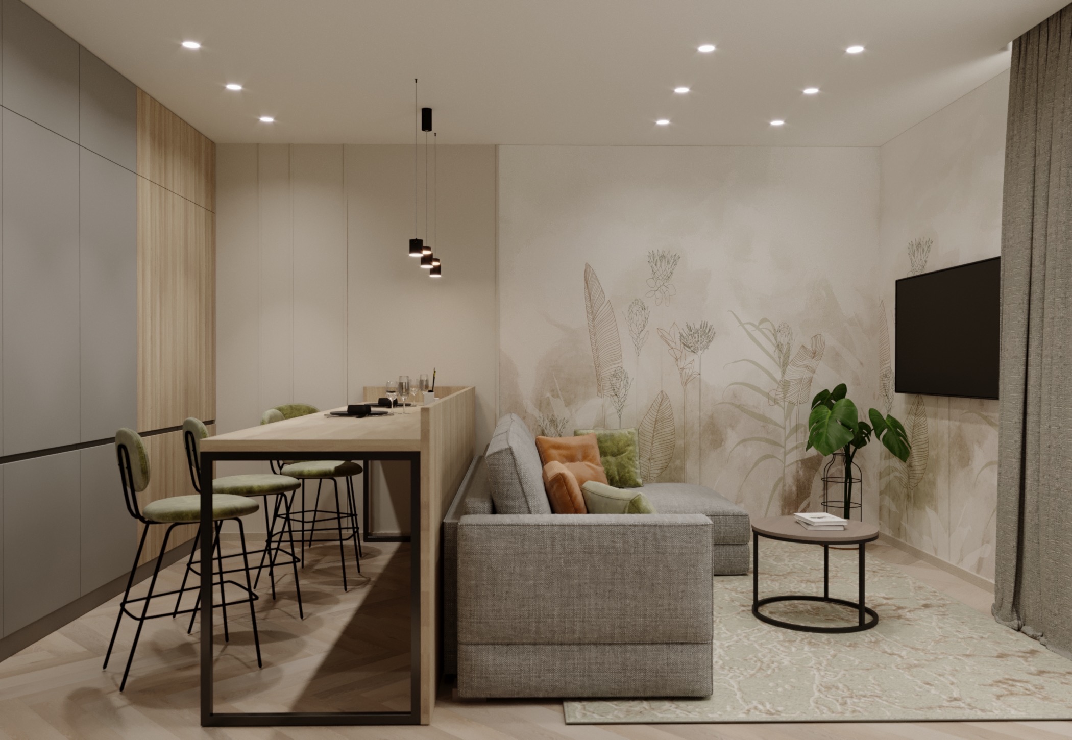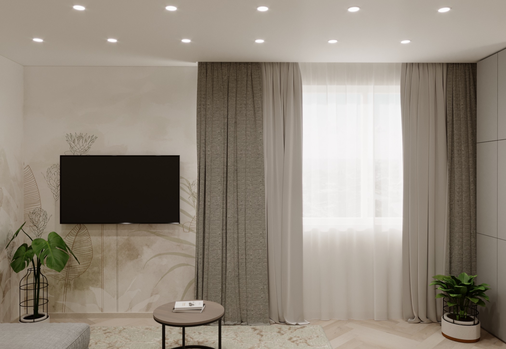 Светлые пастельные цвета с преобладанием натуральных оттенков (зеленый, голубой, песочный) создают уют, а длинные растения вытягивают комнату вверх. Стиль и гармония могут проявляться даже в одной стене.