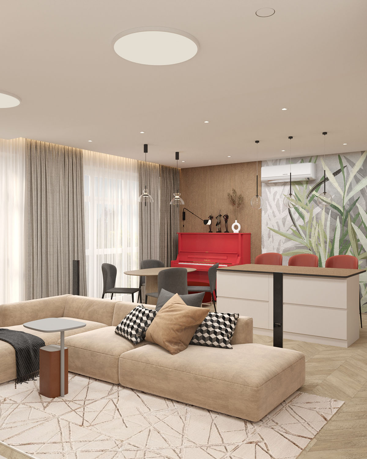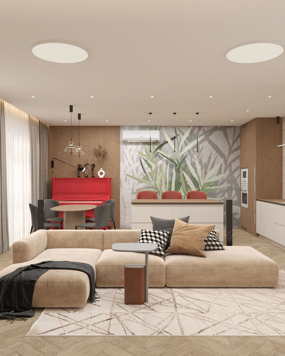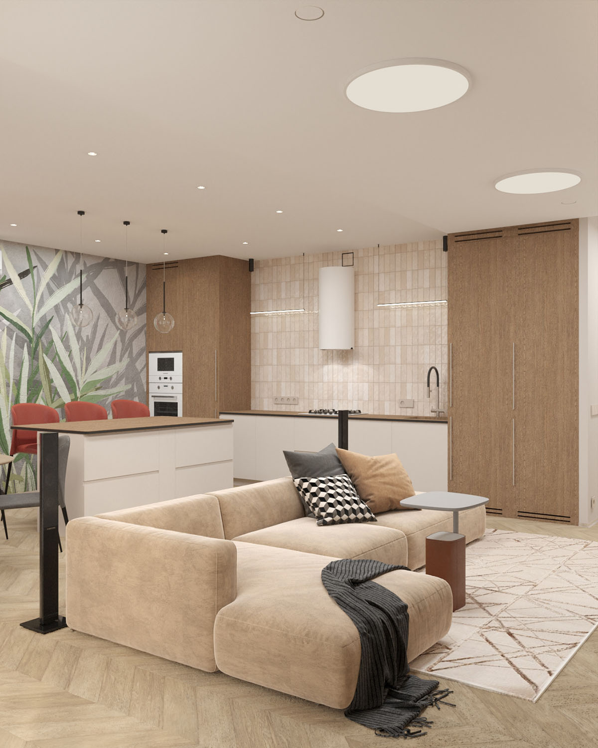 Кухня-гостиная в двухэтажном коттедже