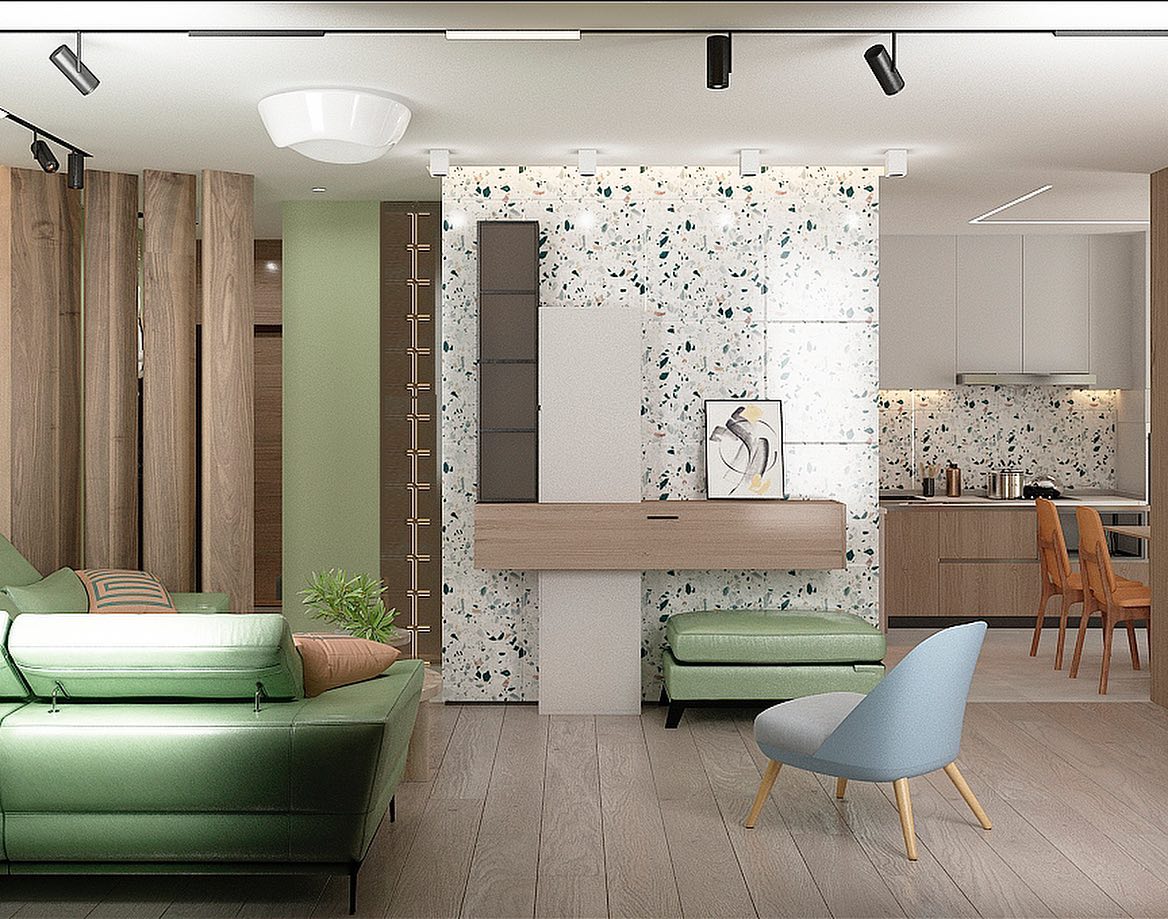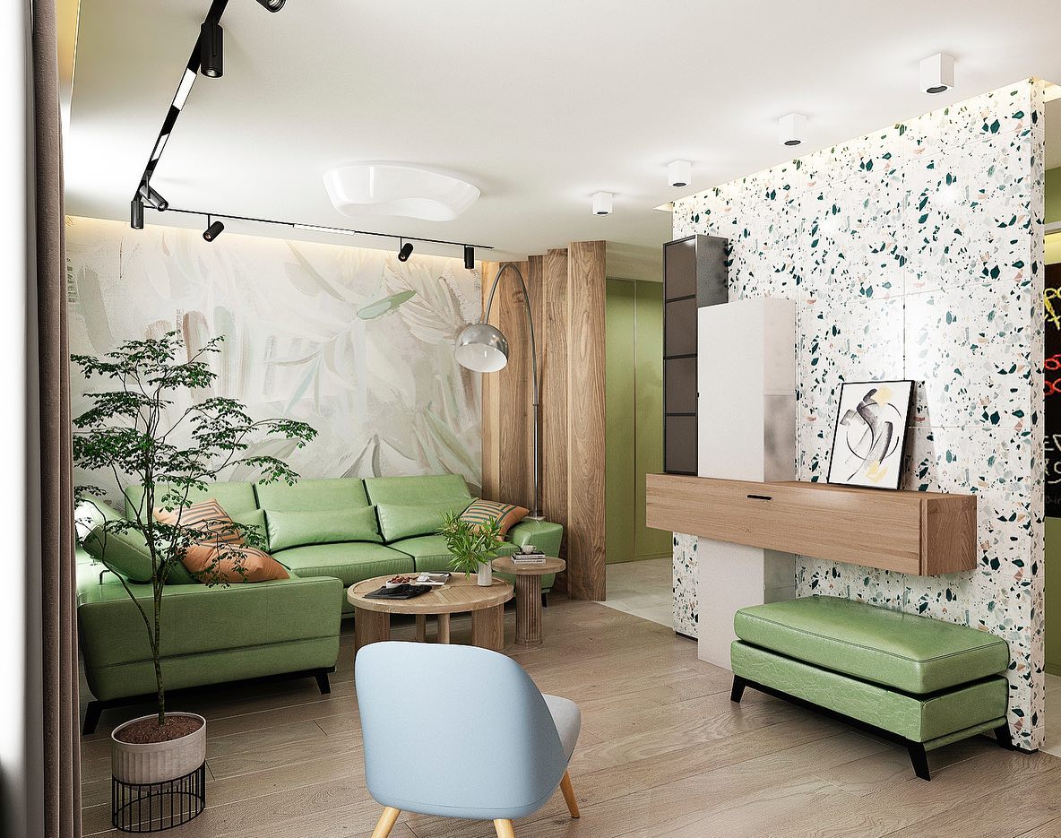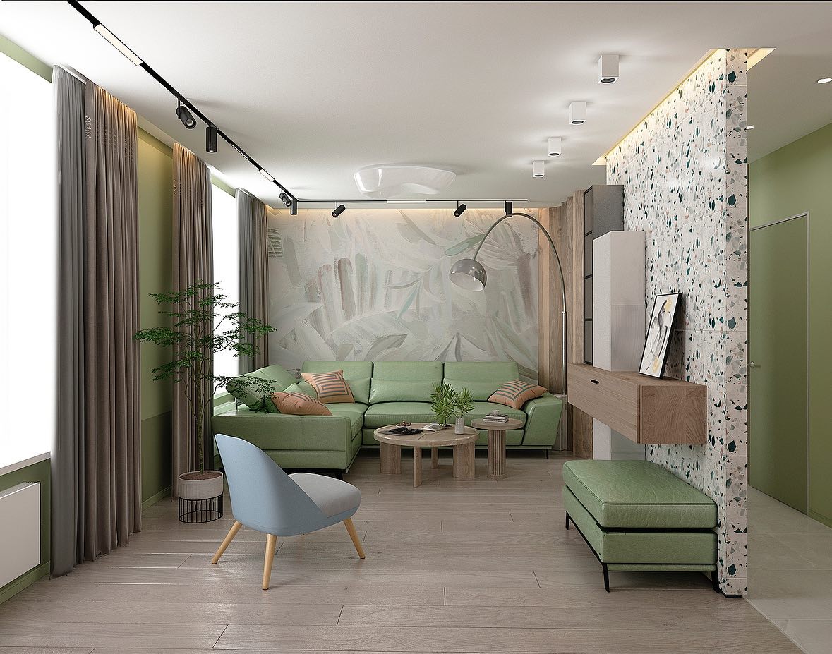Представляем вам проект гостиной с обоями из коллекции дизайнерских принтов «ALIVE». Широкие мазки, спокойные тона и растительные мотивы — что может быть лучше для искателей умиротворения? Подарите себе покой и гармонию, воплощённую в этой удивительной коллекции!