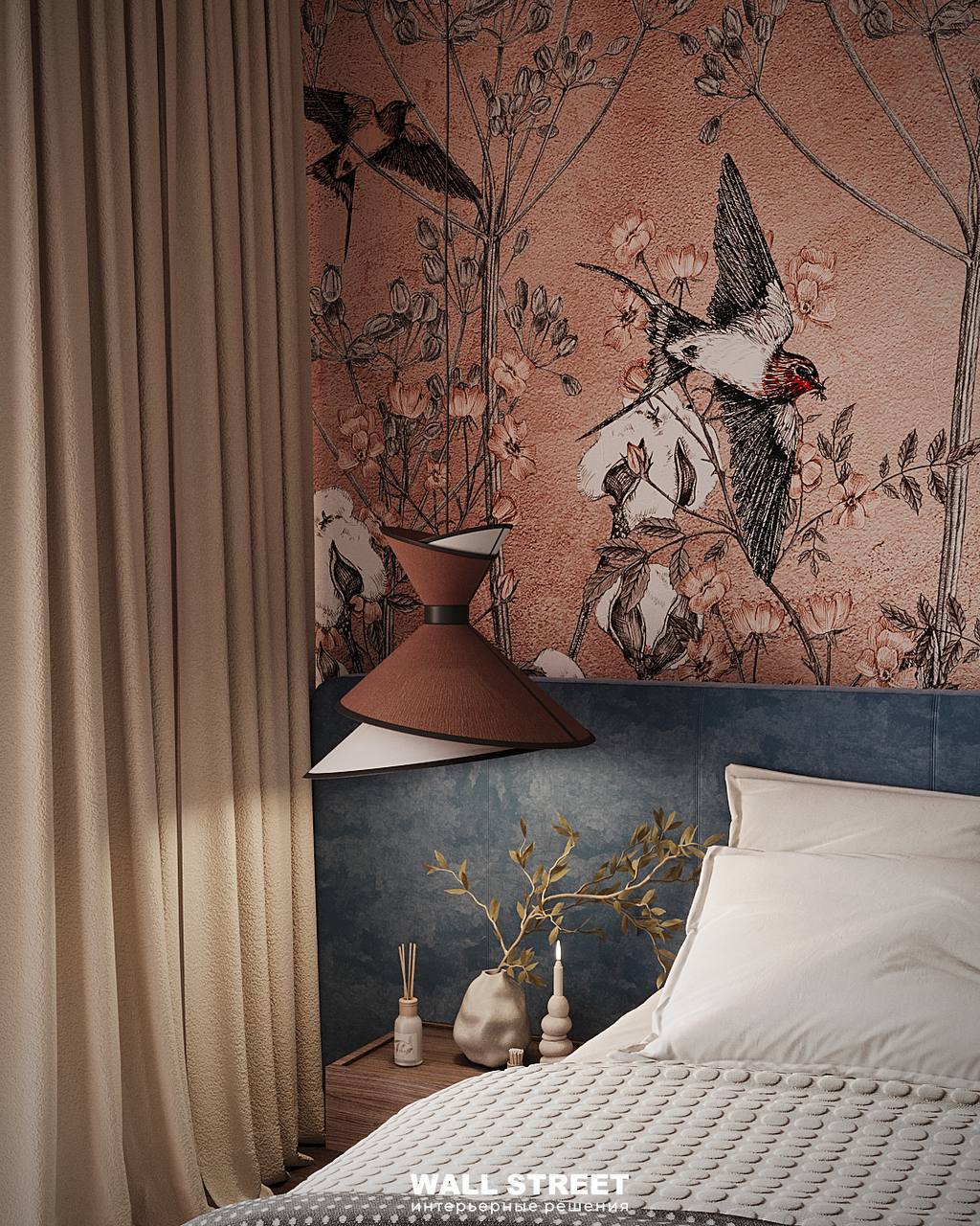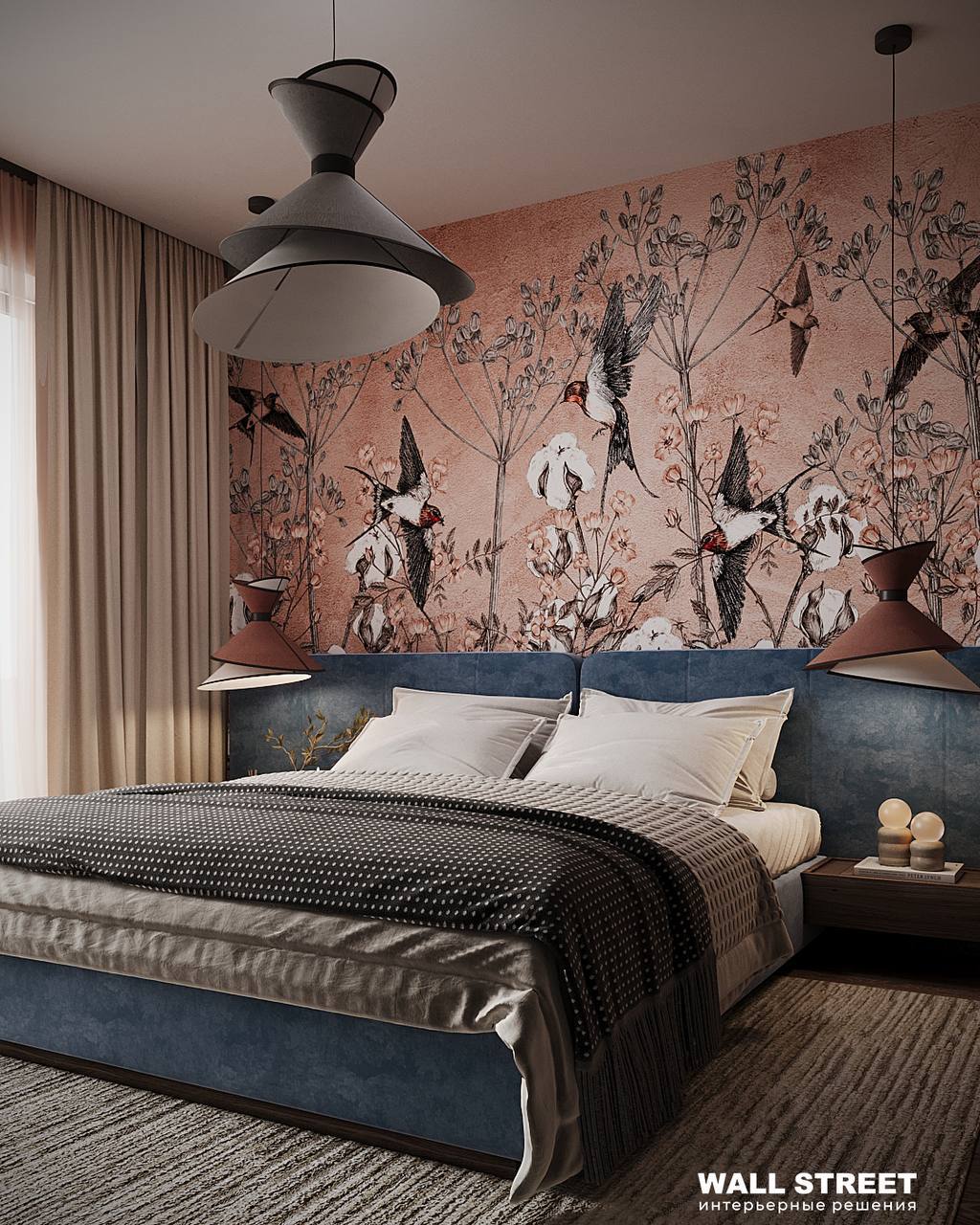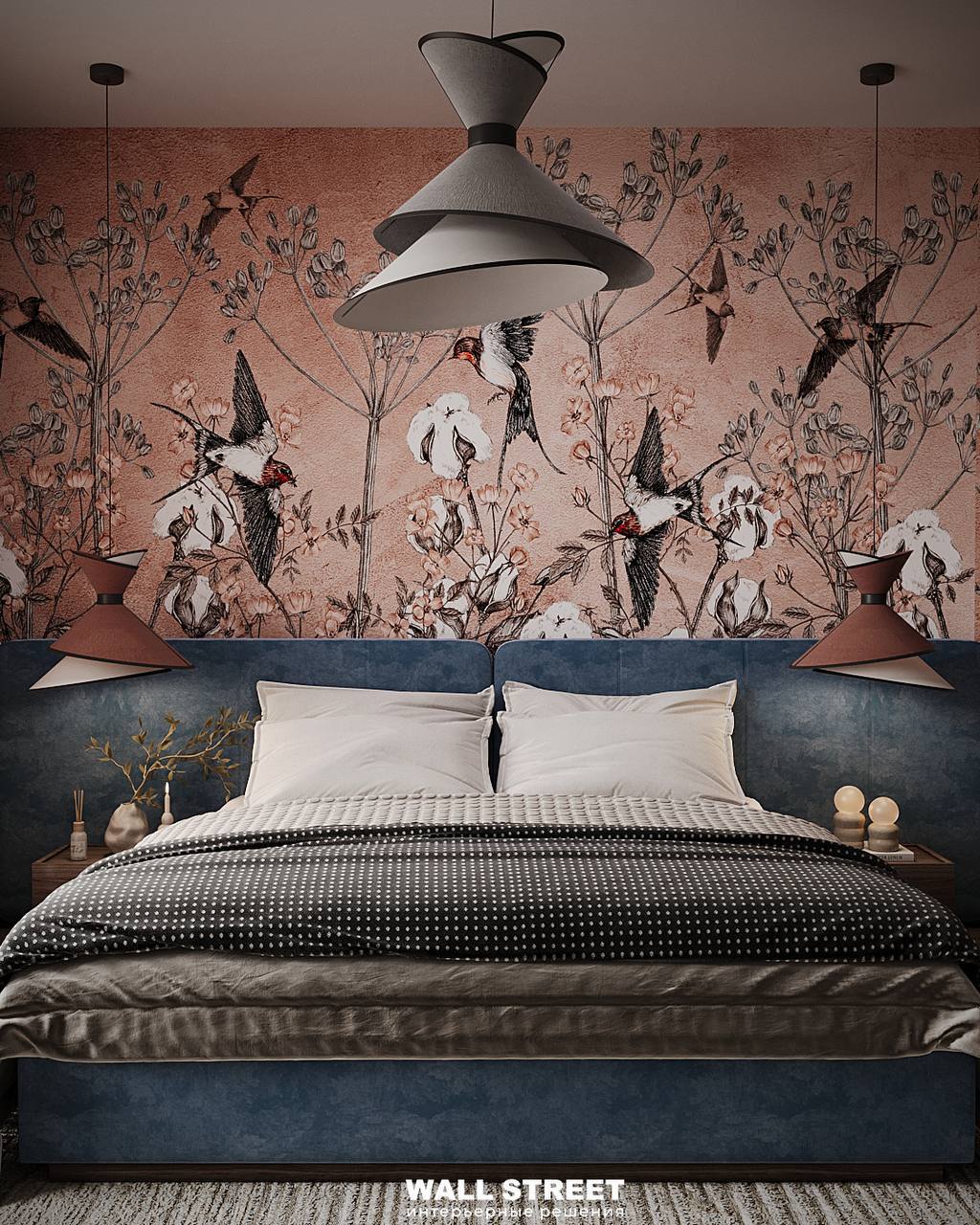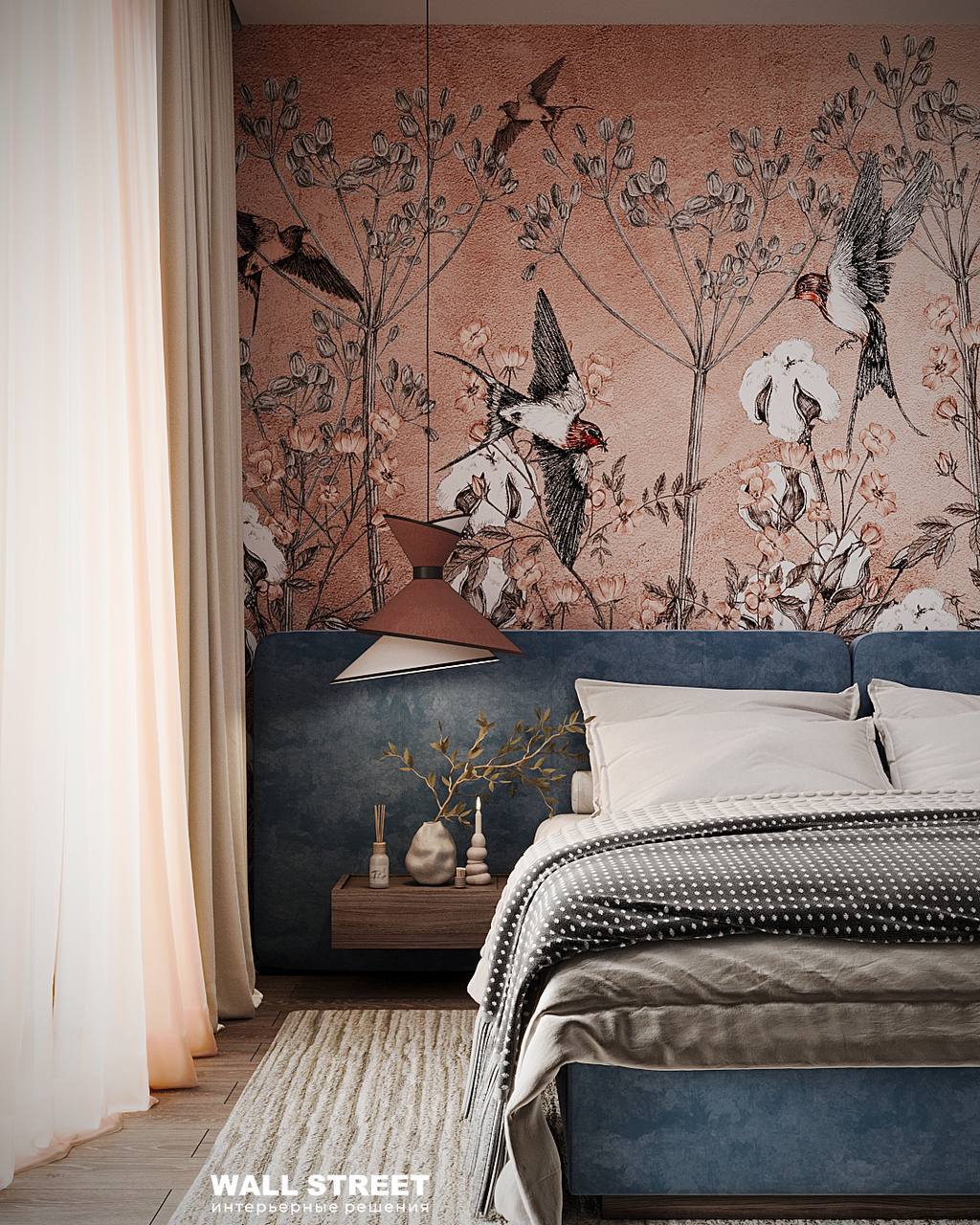 Представляем вам проект спальни с обоями из коллекции дизайнерских принтов «BOTANICA». Эта невероятно красивая коллекция с её растительными элементами переносит вас в загадочные, таинственные леса и поля. Сквозь утренний туман и лёгкое дуновение ветра здесь словно слышится пение птиц. А дизайнерские принты с хлопком добавляют лёгкости пейзажам в приглушённых тонах.