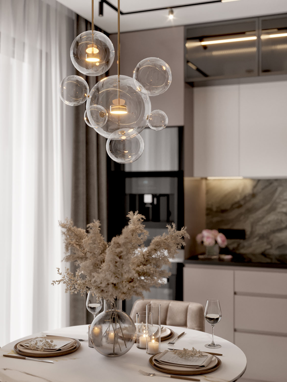Кухня в квартире девушки-студентки. Фреска из коллекции BREEZE. Обои из этой коллекции соберут отличную концепцию интерьера, в котором текстиль дополняет пространство, собирая картинку в единое целое, пропуская в помещение воздух и наделяя его лёгкостью.