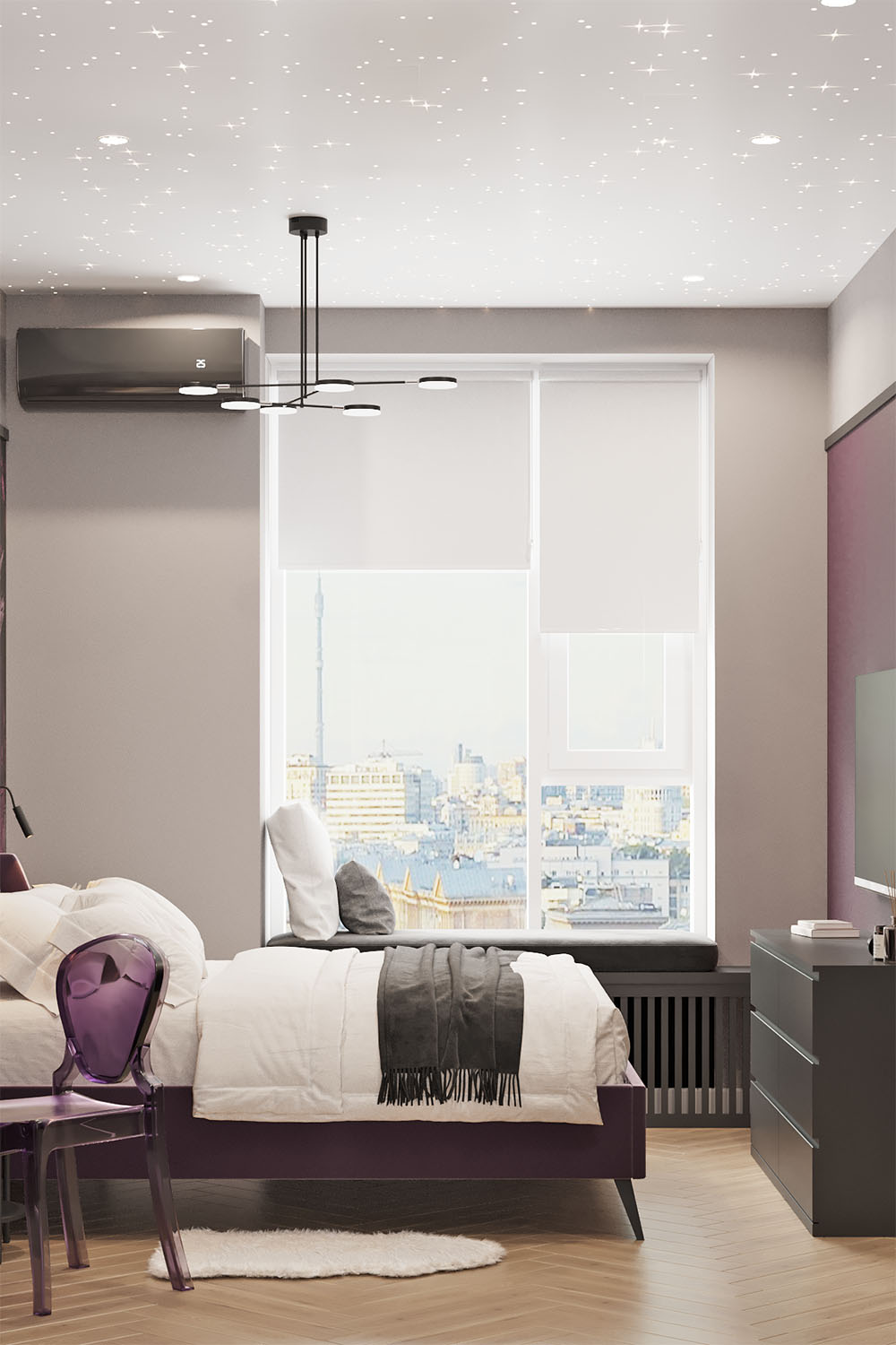 Дизайн-проект в ЖК «EVER» в г. Москва. Спальня площадью 15,7 м² для молодой девушки, увлекающейся сёрфингом, конным спортом, путешествиями и психологией. Заказчица — очень яркая и жизнерадостная девушка, поэтому и дизайн для неё создавался соответствующий. Интерьер получился контрастный, сочный и незабываемый. Добиться такого эффекта в том числе помогли обои из коллекции BRUSH.