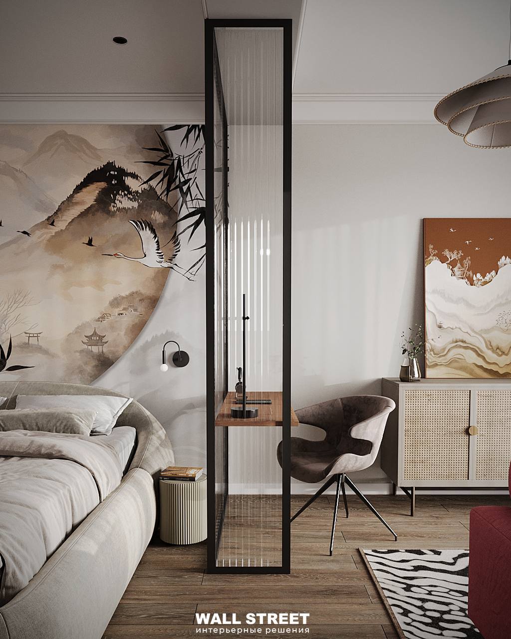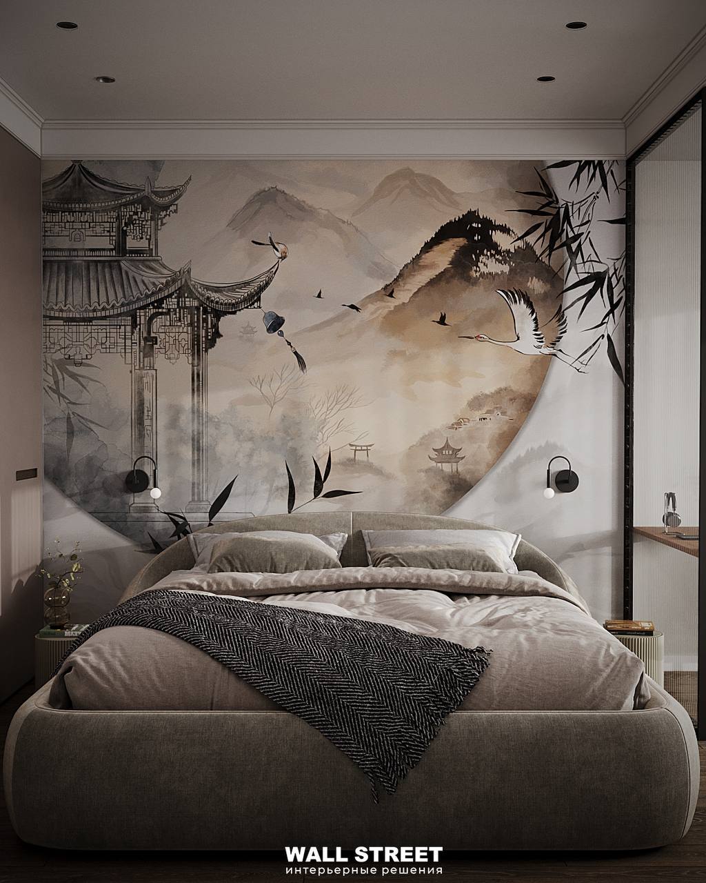 Представляем вам проект спальни с обями из коллекции дизайнерских сюжетов «БУСИДО / BUSIDO». Создавая коллекцию, дизайнеры вдохновлялись уникальной культурой Японии: от знаменитой графики, каллиграфии, живописи до архитектуры. Цвета коллекции представлены в двух версиях: насыщенные и приглушенные, что расширяет границы ее применения.