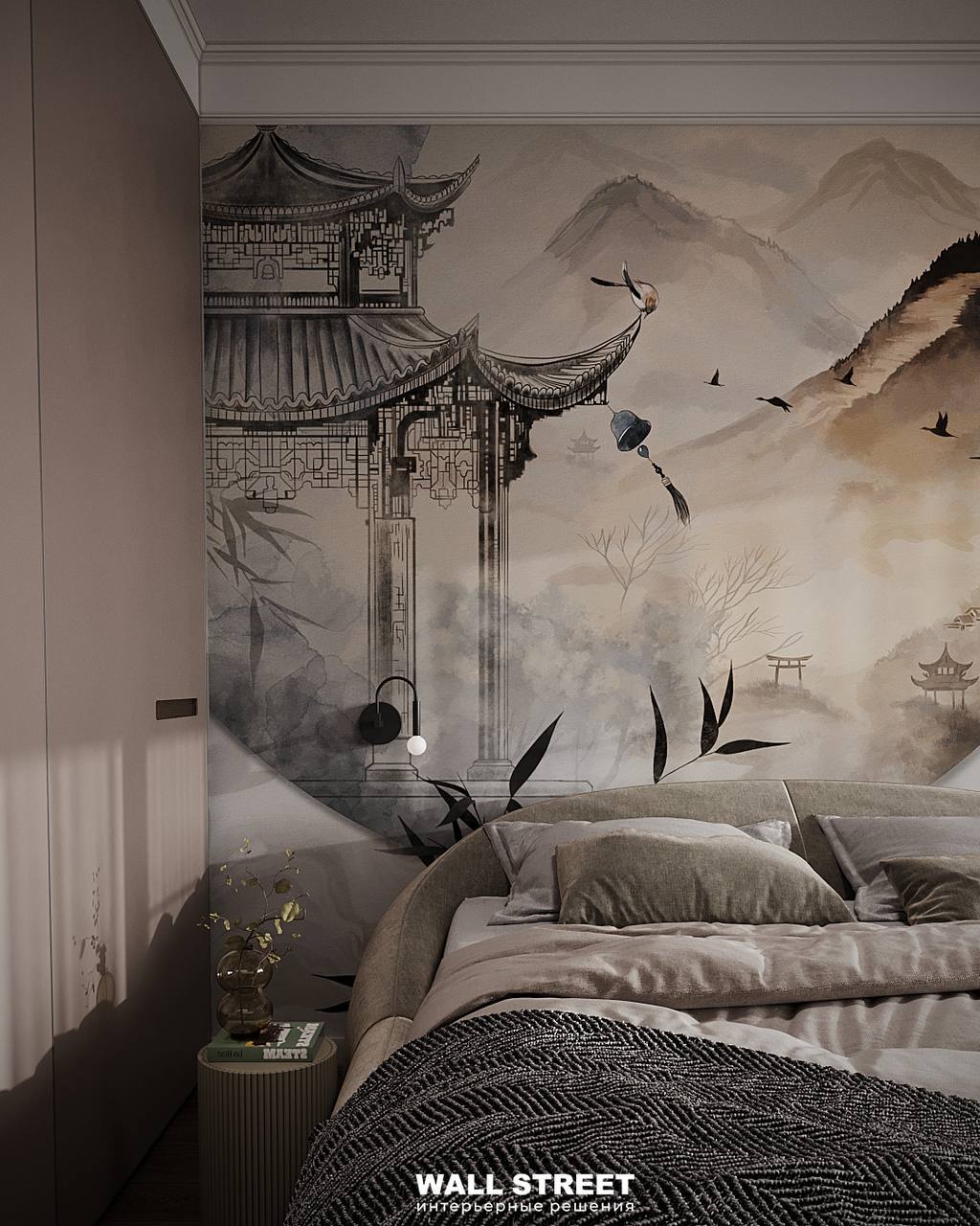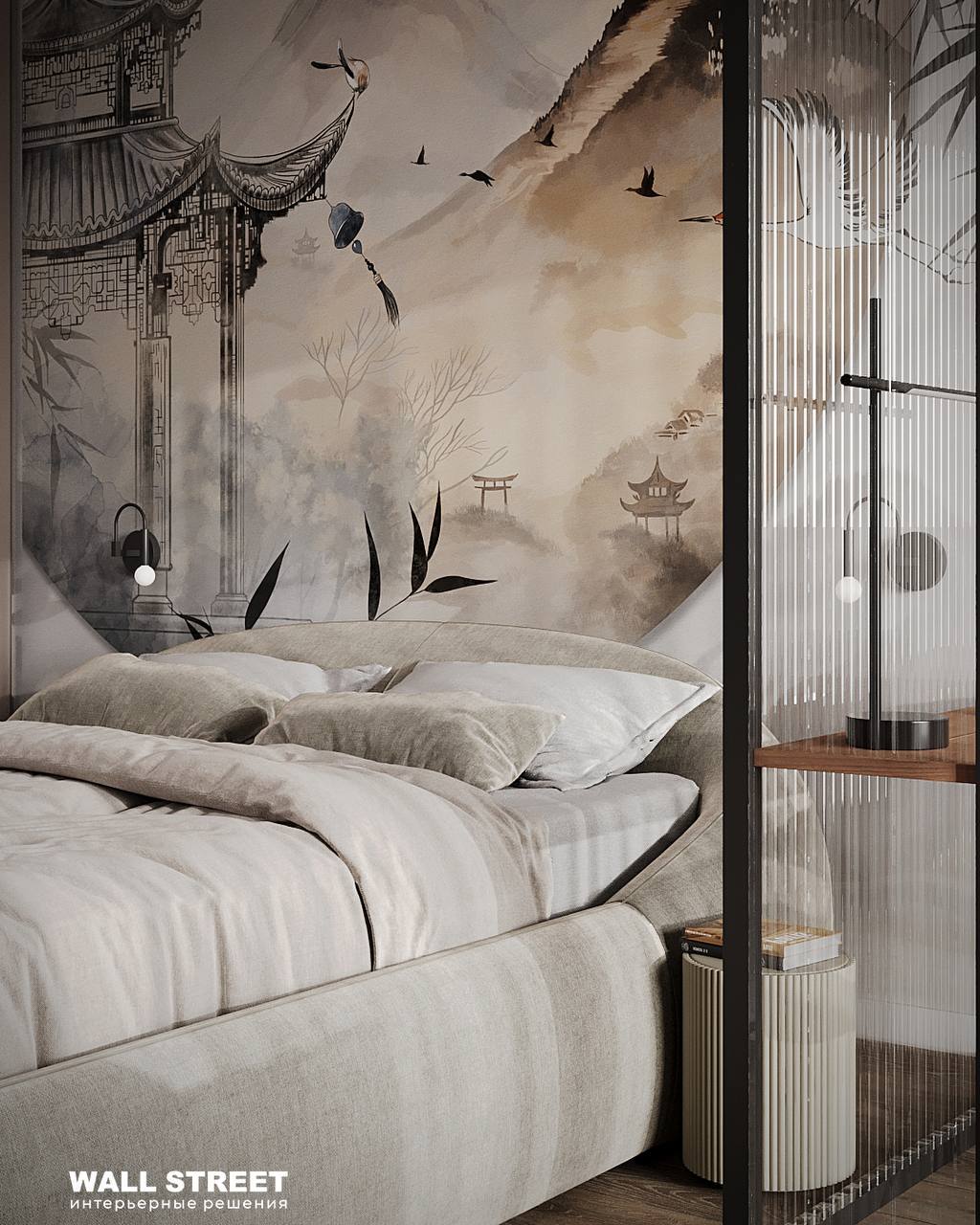 Обои БУСИДО / BUSIDO в дизайне спальни