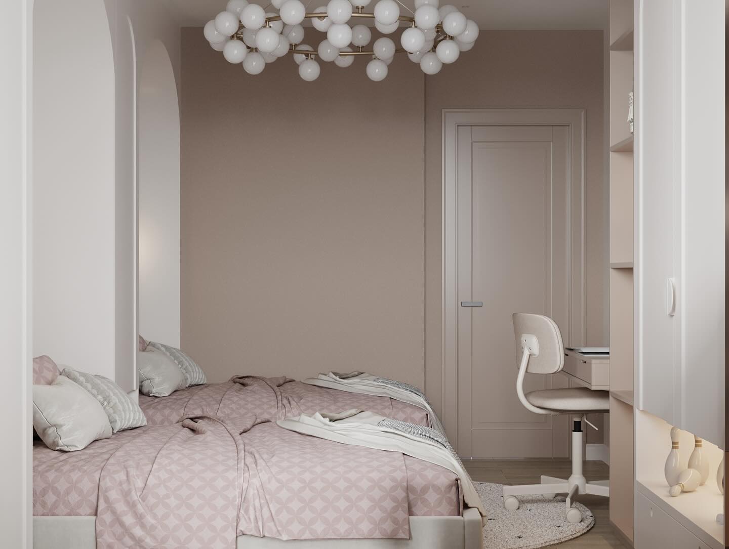 Комната двух для девочек из проекта квартиры в Горячем ключе. Обои из коллекции COSMOS. Коллекция делает комнату современной, стильной и подчеркивает индивидуальность хозяек.