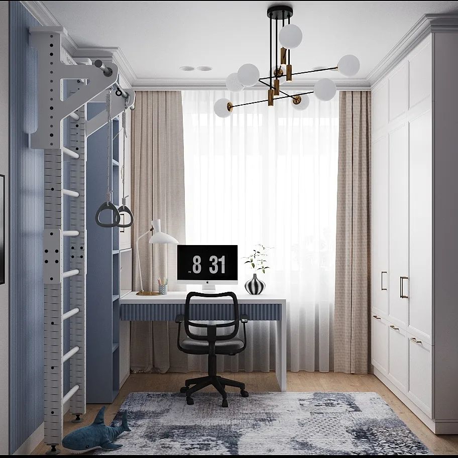 Детская комната с обоями из коллекции дизайнерских принтов «DECO». Дорогие оттенки, геометрический рисунок и смелое сочетание текстур – всё это вы найдёте в этой удивительной коллекции. Принты воплотили в себе роскошь ар-деко, графичные линии минимализма 60-х годов и современные тренды. Также здесь успешно объединились интересные текстуры штукатурки, бетона и золота с благородными оттенками серого, бежевого, розового, бирюзового, синего. Строгость и простота рисунка в сочетании со смелыми цветовыми решениями выигрышно украсят любой интерьер и гарантированно останутся в тренде на долгие годы!