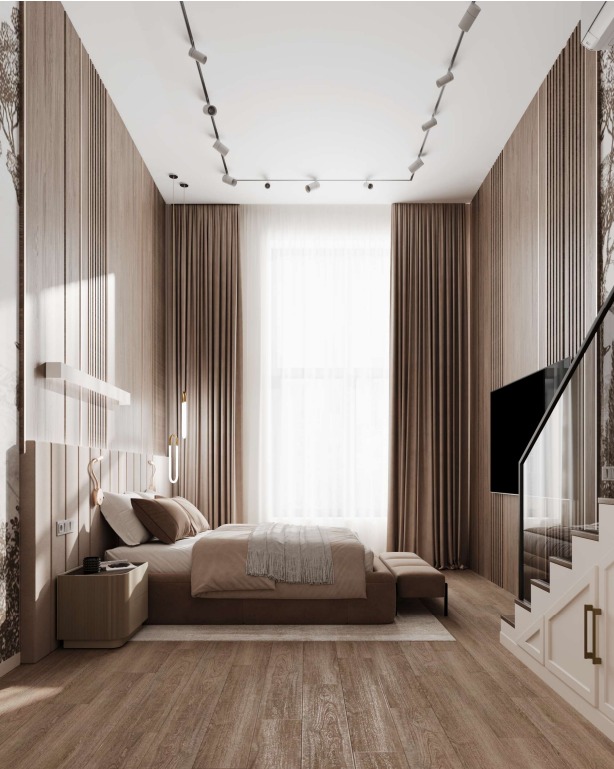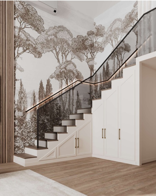 Представляем вам проект спальни с обоями из коллекции дизайнерских принтов «ESTAMPE». Словно скрытые за лёгкой пеленой, её принты напоминают иллюстрации из старинной книги про путешествия. Едва заметные силуэты загадочных растений приглашают задержаться ненадолго в их необычных лесах и отвлечься от привычных забот.