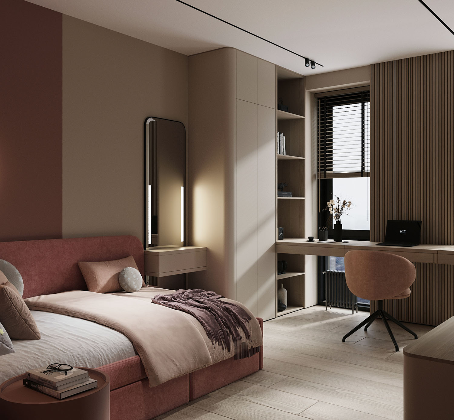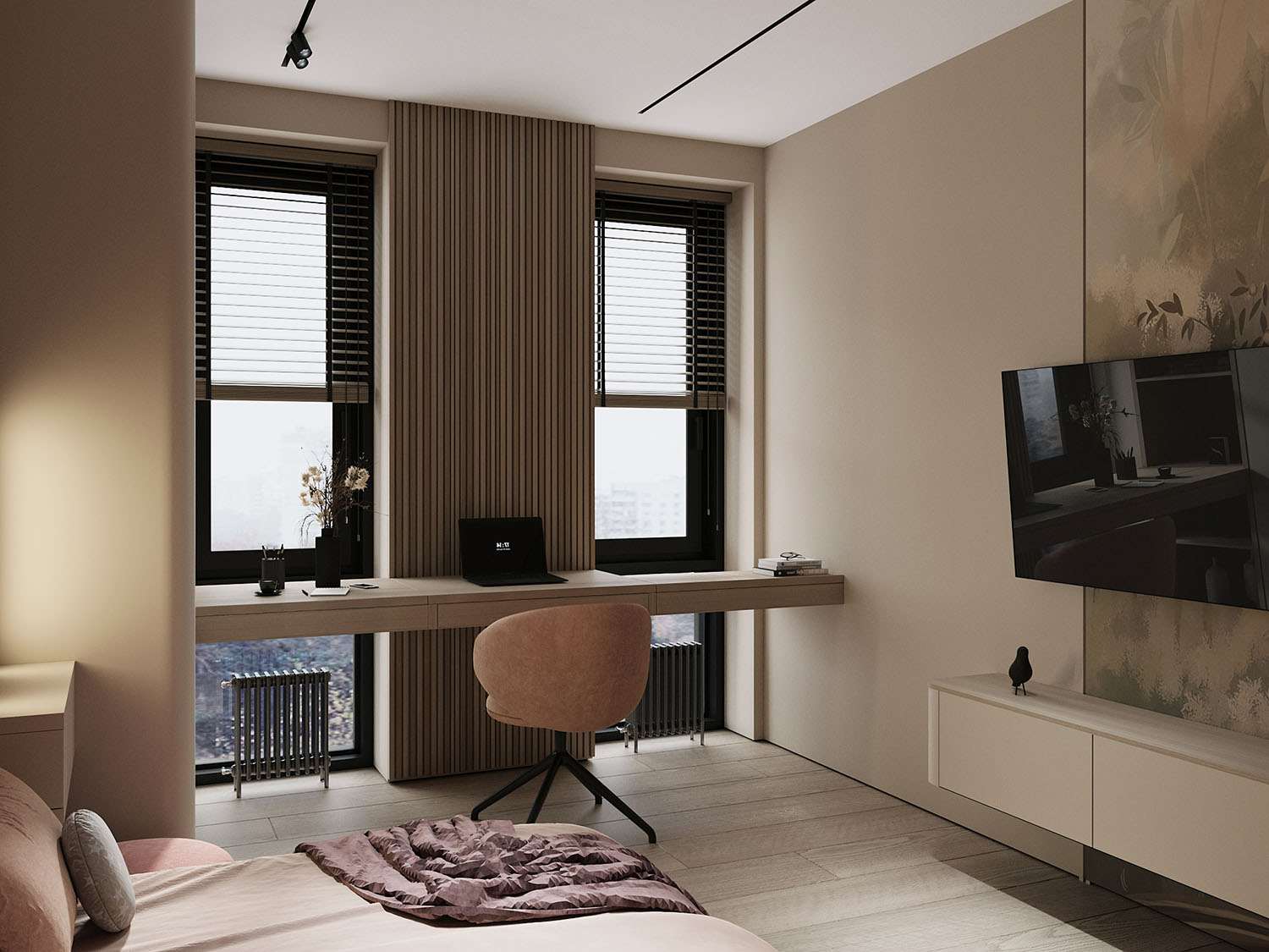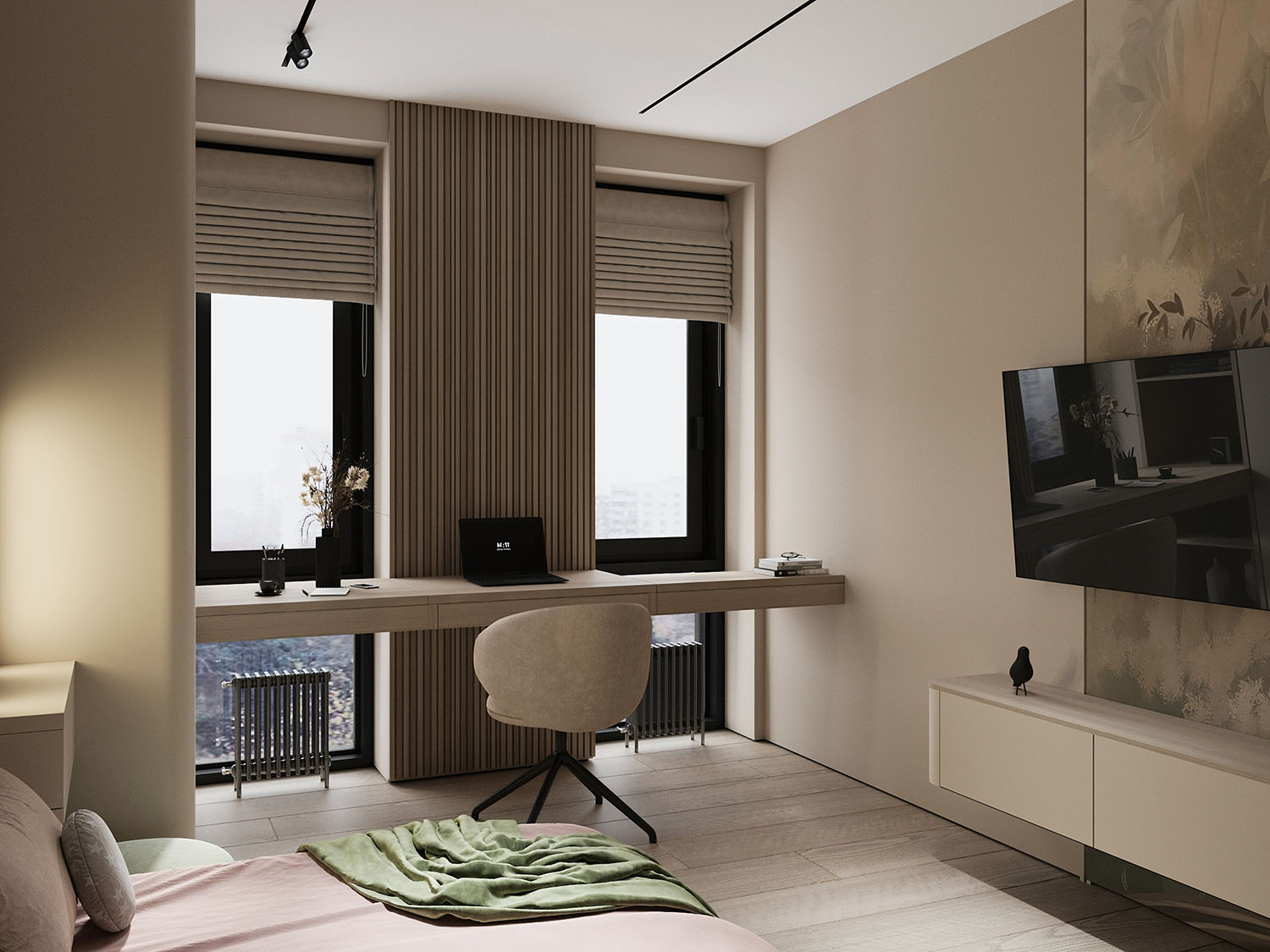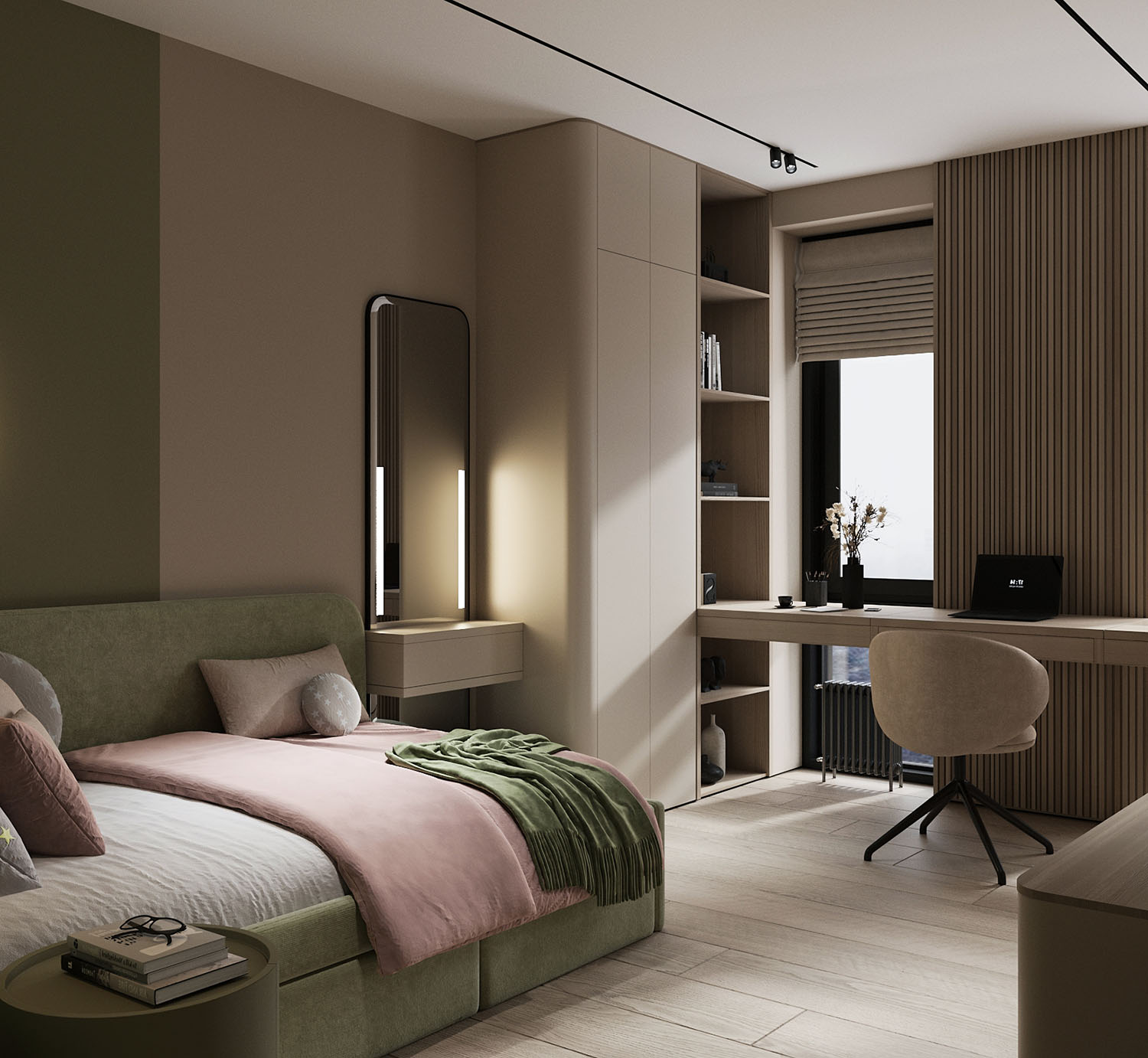 Детская делалась для девочки 10 лет с заделом на будущее. В маленькой комнате смогли уместить всё и даже сделать акцент в виде обоев ФАУНА ЗУМ / FAUNA ZOOM.