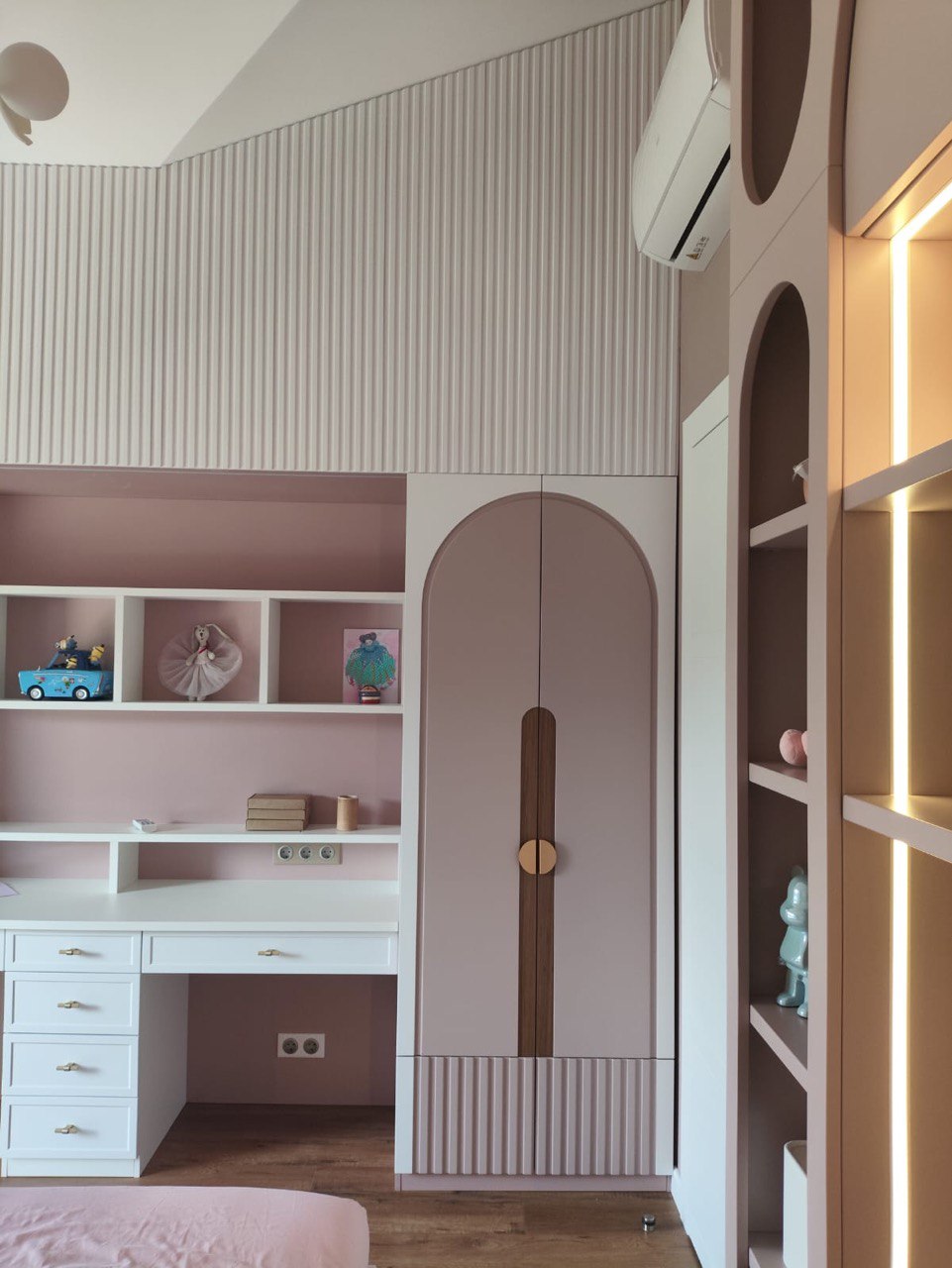 Лёгкий, уютный и продуманный до мелочей интерьер стал любимым местом для игр и отдыха маленьких принцесс. Родители по достоинству оценили удобство и функциональность решений.