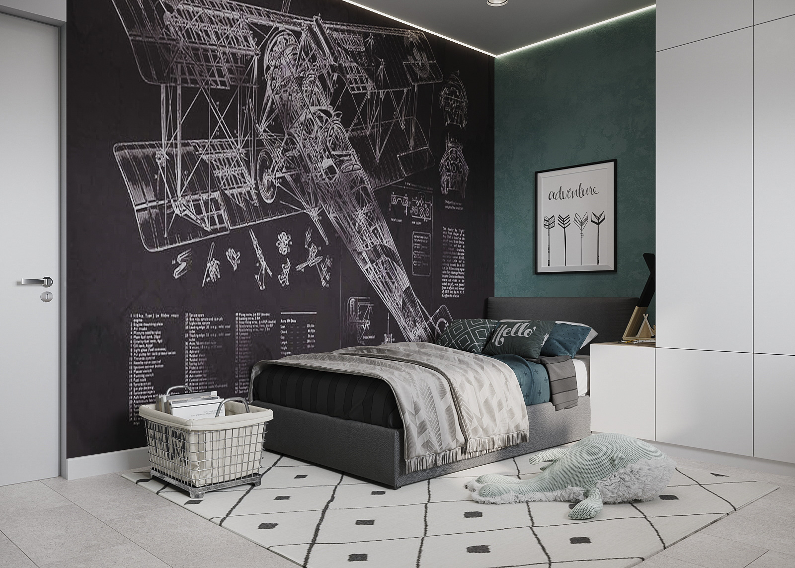 Для оформления этой комнаты были выбраны обои из коллекции INDUCTION. Коллекция создана для тех, кто не представляет своей жизни без науки и открытий. В ней собраны замысловатые чертежи, которые станут прекрасным дополнением комнаты в стиле смелого стимпанка или лофта. Окружите себя тематическими принтами и откройте сердце навстречу новым знаниям!