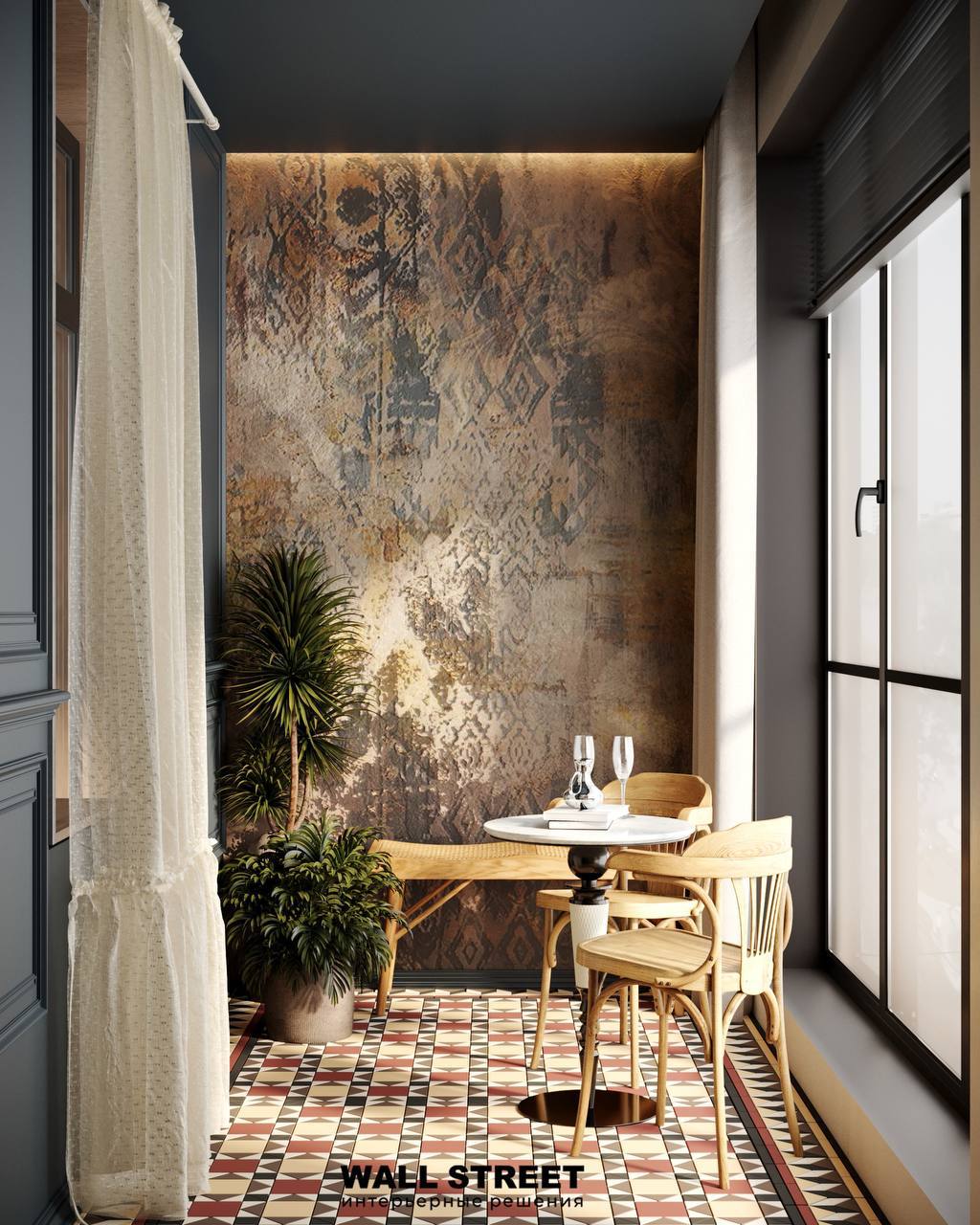 Представляем вам проект балкона с обоями из коллекции дизайнерских принтов «PROSECCO».