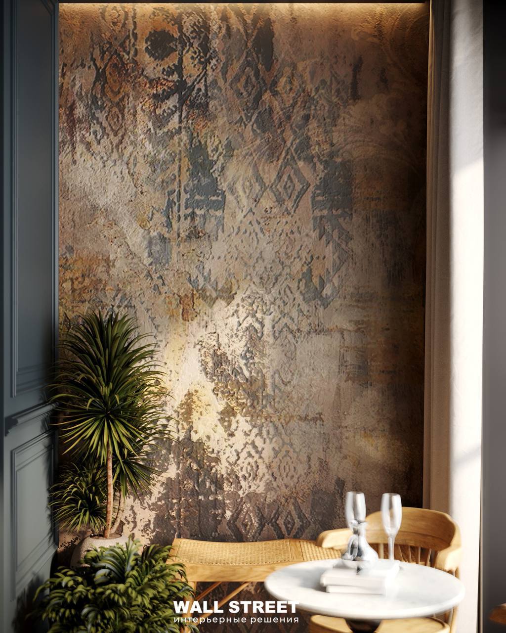 Мягкая игра мазков и текстур делает пространство живым и наполненным движением. Такие стены невозможно обойти взглядом. А жить в таком интерьере — это только получать удовольствие!