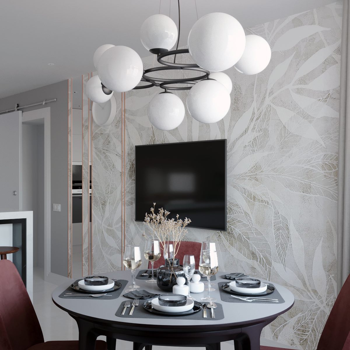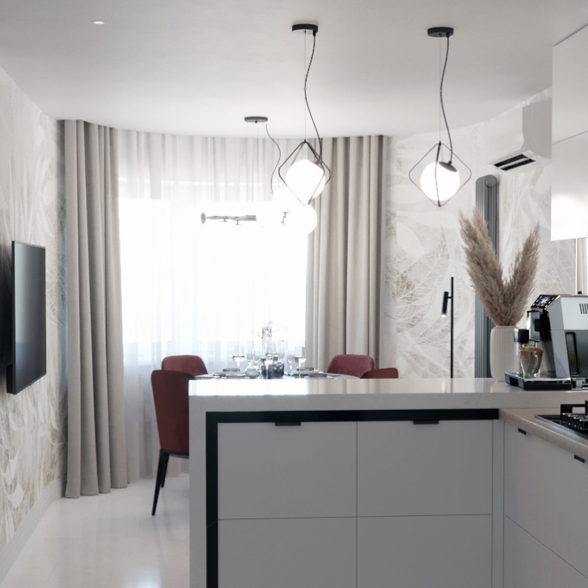 Представляем вам проект кухни с обоями из коллекции дизайнерских принтов «Selva 2019». Нежные вручную прорисованные принты этой коллекции позволяют вам создать в вашем интерьере настоящие тропики. Несмотря на яркие акценты, в ней очень много воздуха, растительности и свежести. Взглянув на них, мгновенно погружаешься в приятные грёзы. В таком интерьере очень легко сохранять спокойствие и внутреннюю гармонию.