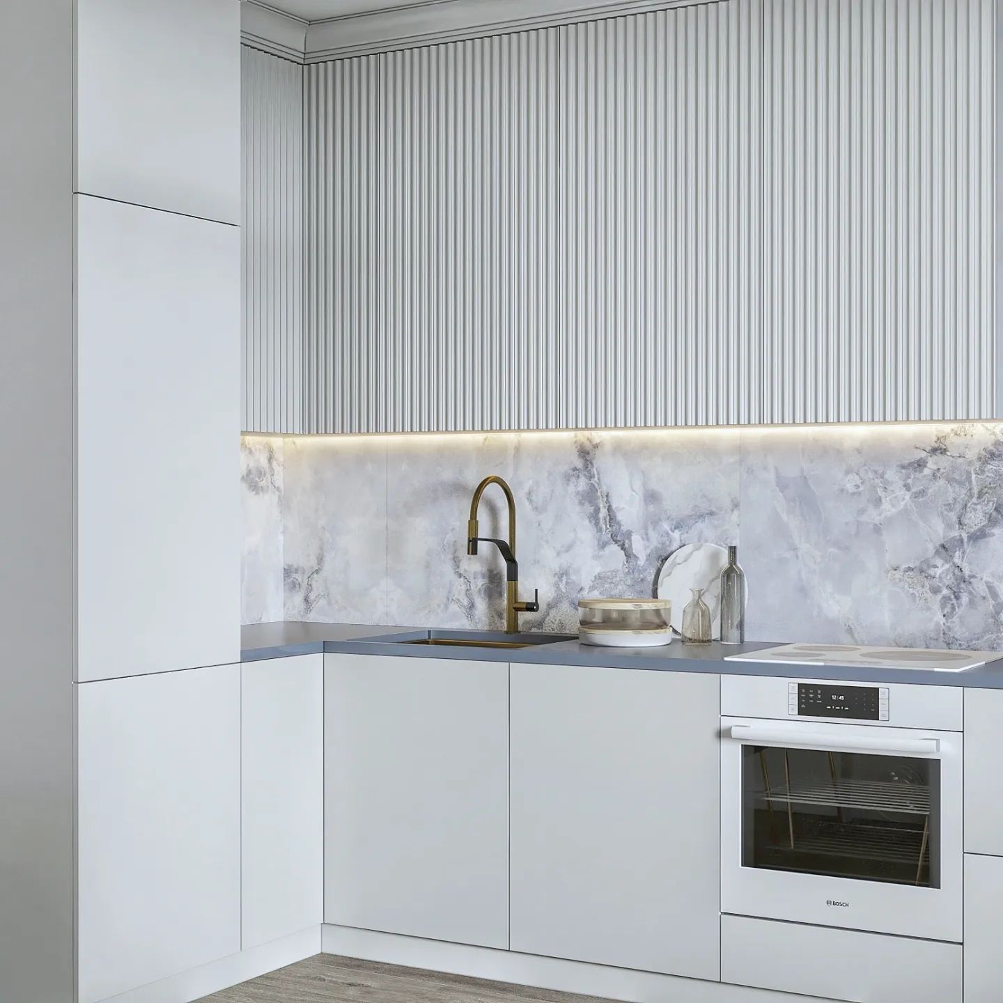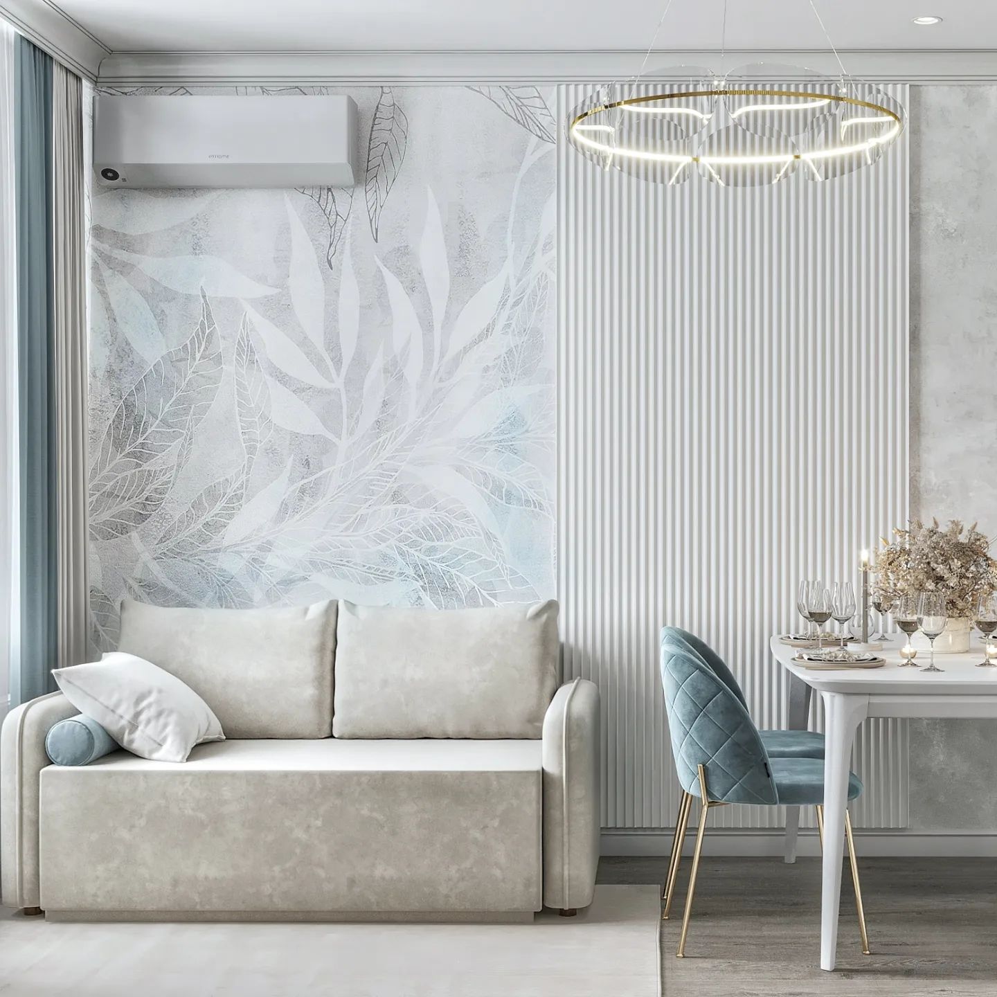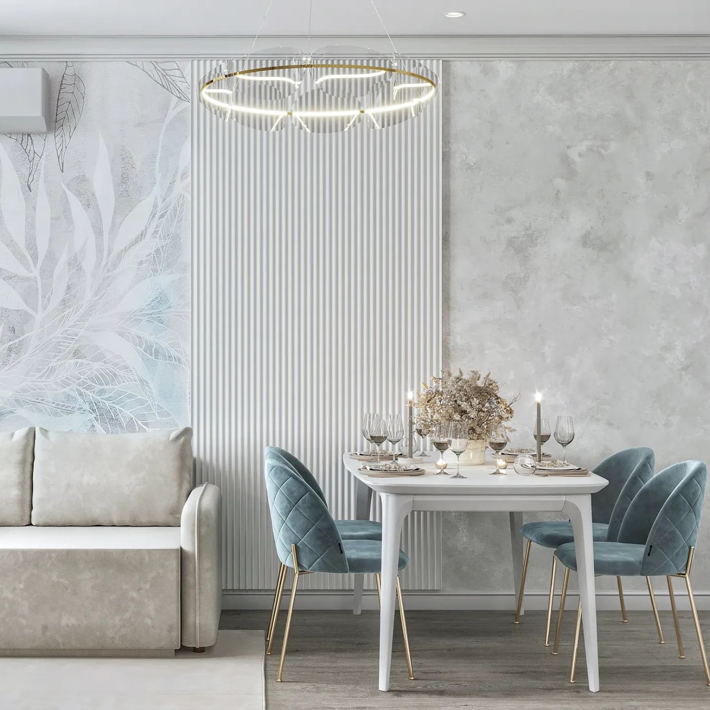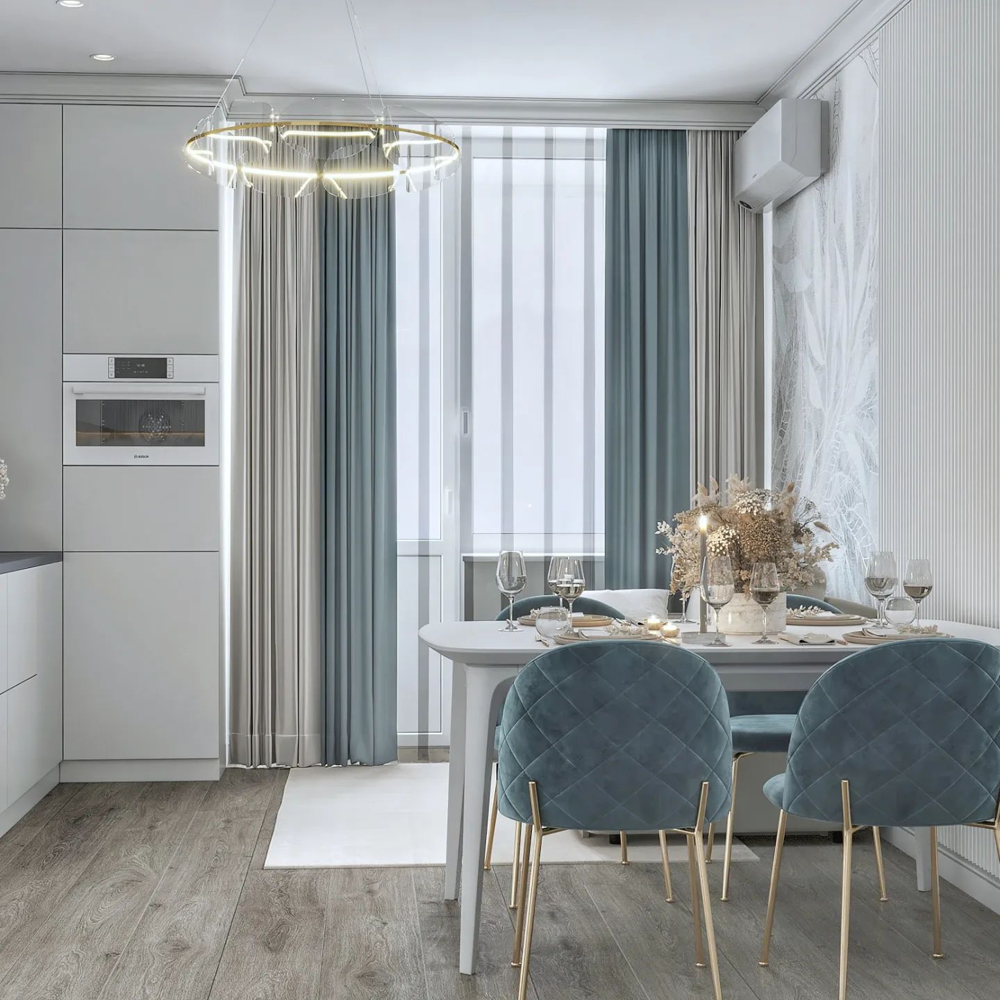 Представляем вам проект кухни местом для отдыха и возможностью встречать много гостей. Обои были выбраны из коллекции «СЕЛЬВА 19 / SELVA 19». Нежные вручную прорисованные принты этой коллекции позволяют вам создать в вашем интерьере настоящие тропики. Несмотря на яркие акценты, в ней очень много воздуха, растительности и свежести. Взглянув на них, мгновенно погружаешься в приятные грёзы. В таком интерьере очень легко сохранять спокойствие и внутреннюю гармонию.