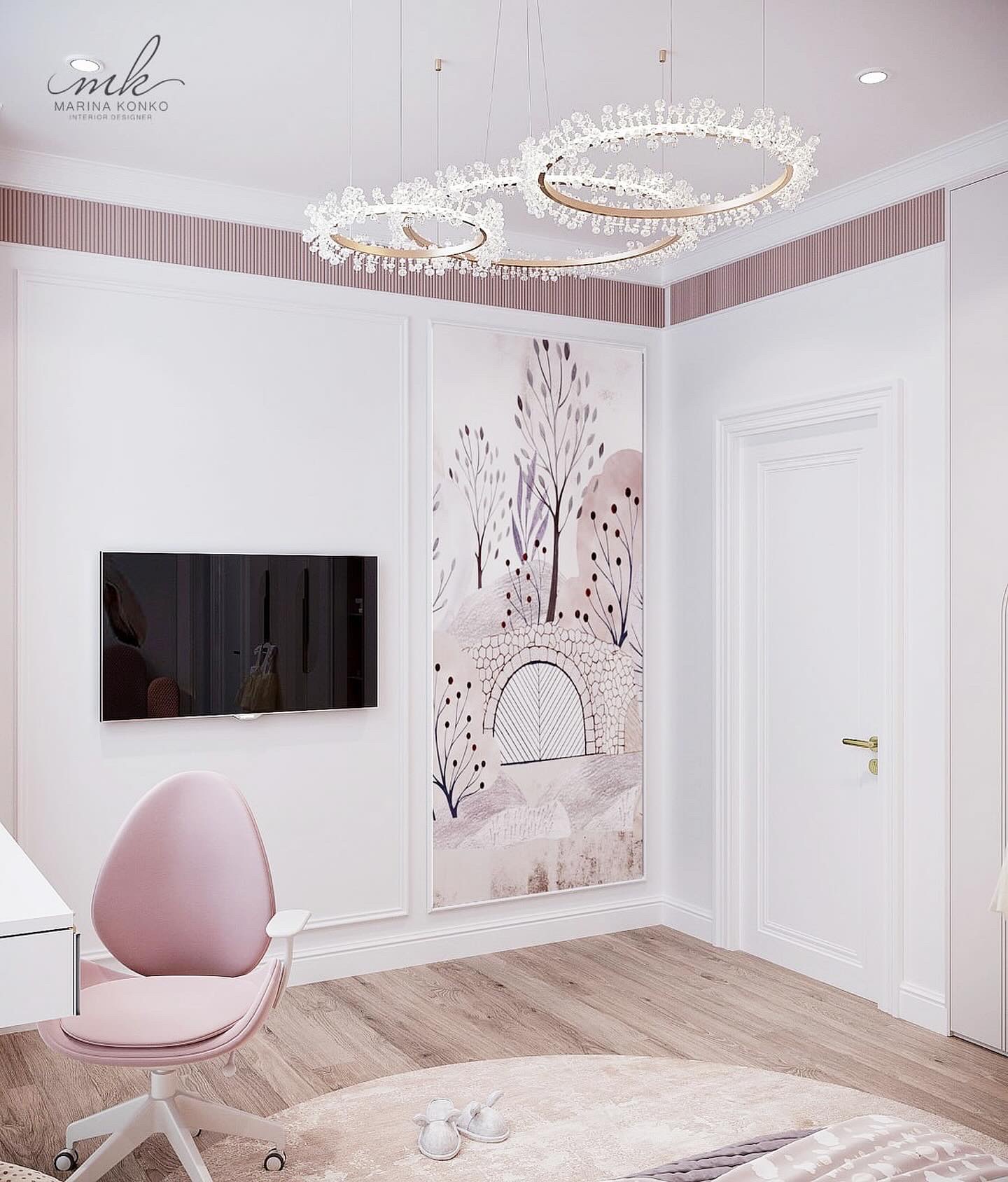 Дизайн детской комнаты площадью 15,2 м² для маленькой девочки Софии в загородном доме. Для заказчиков была важна нежная цветовая гамма, функциональность комнаты, а также чтобы комната была на вырост и подходила для девочки школьного возраста. Главными пожеланиями заказчика было: свободный доступ к шкафу, высокое зеркало, хорошее освещение и больше свободного пространства.