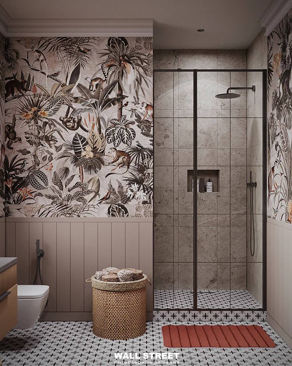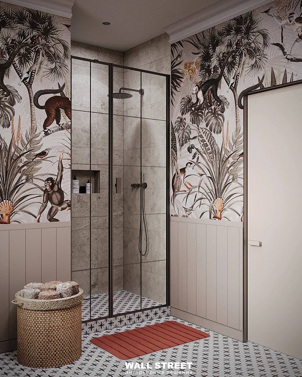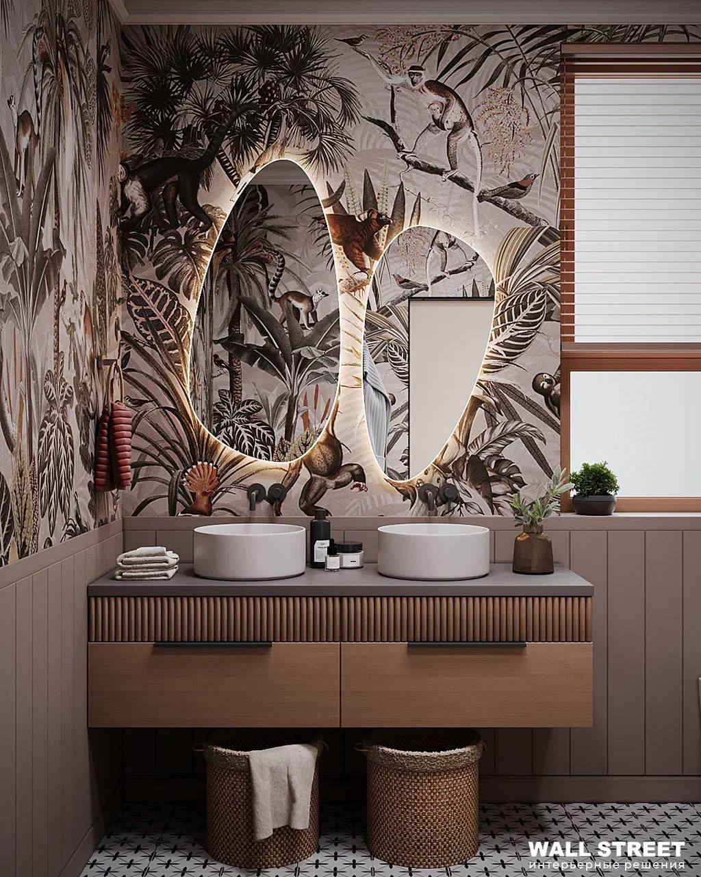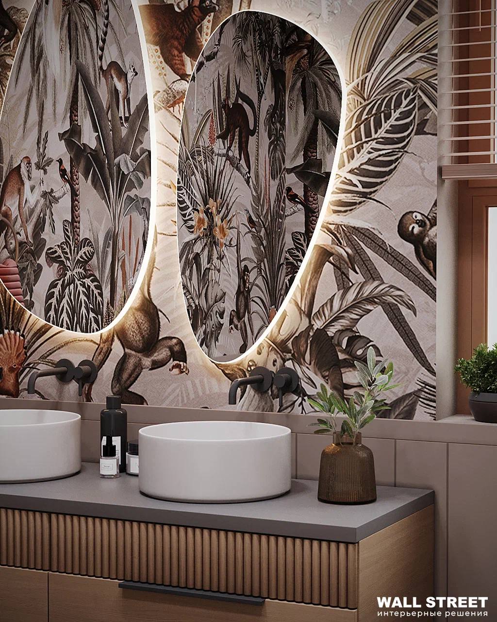 Представляем Вам проект санузла с обоями из коллекции дизайнерских принтов «ЭДЕМ 21 / EDEN 21». В ней мы совместили привлекательные для всех природные мотивы с яркими интенсивными красками. Эти удивительные принты придадут вашему интерьеру особый шик, а проработанные до мельчайших деталей рисунки каждый раз будут привлекать внимание и открывать вашему взору что-то новое.