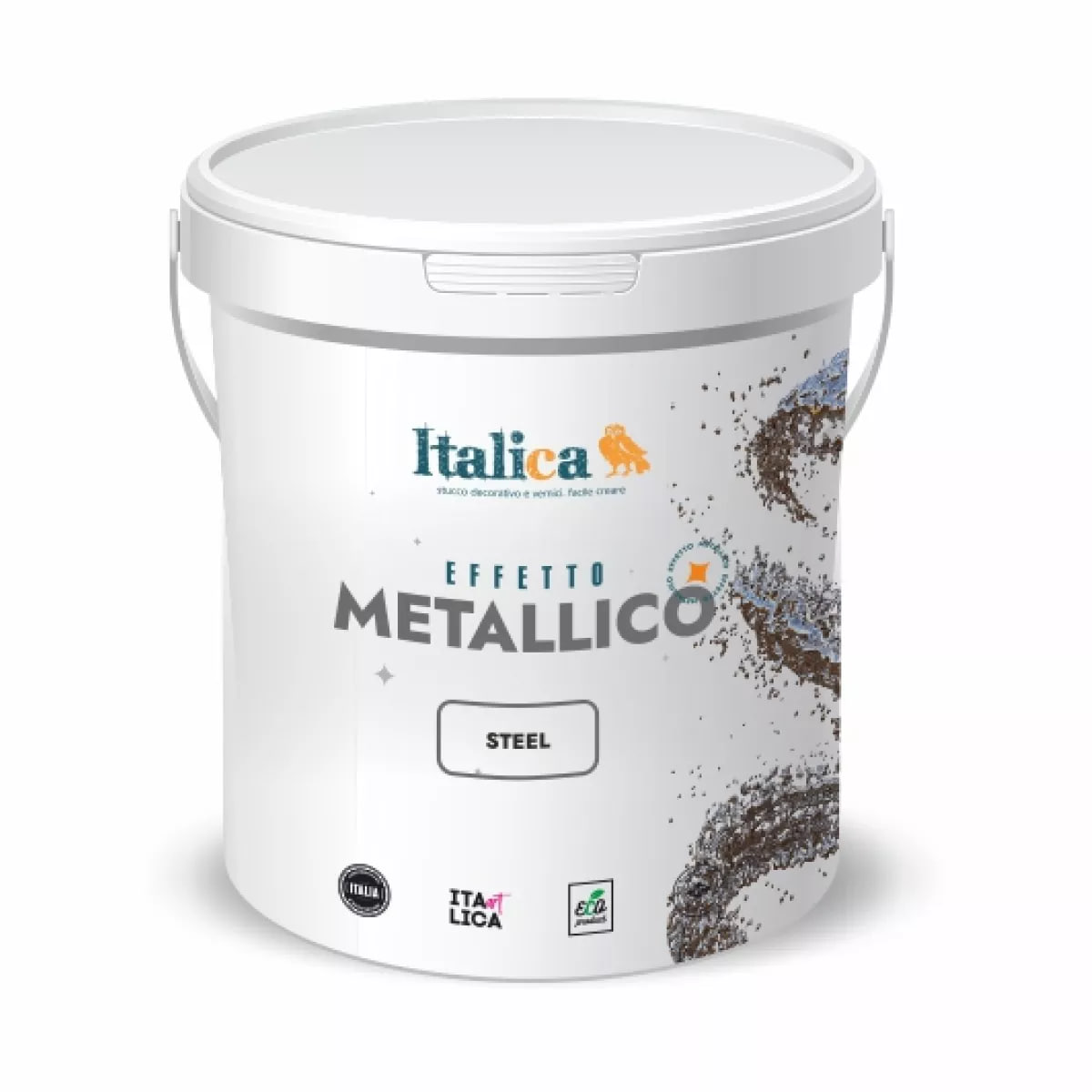 Краска с эффектом металлической поверхности, на водной основе. METALLICO обладает кроющей способностью, можно перекрасить нижнее покрытие. Для гладких и фактурных поверхностей, гипсовых и полиуретановых деталей, настенного декора, дерева и панелей. Используется как самостоятельное покрытие, так и вместе с фактурными декоративными штукатурками ITALICA для получения эффектных покрытий с металлическим отблеском. Влагостойкая. Стойкая к мытью.