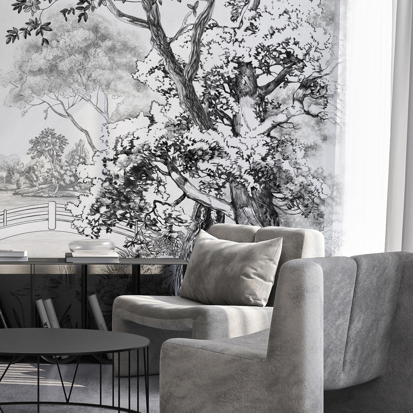- Адаптация изображения под размер вашей стены с учетом расстановки мебели