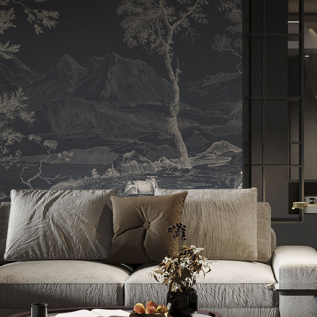 - Адаптация изображения под размер вашей стены с учетом расстановки мебели