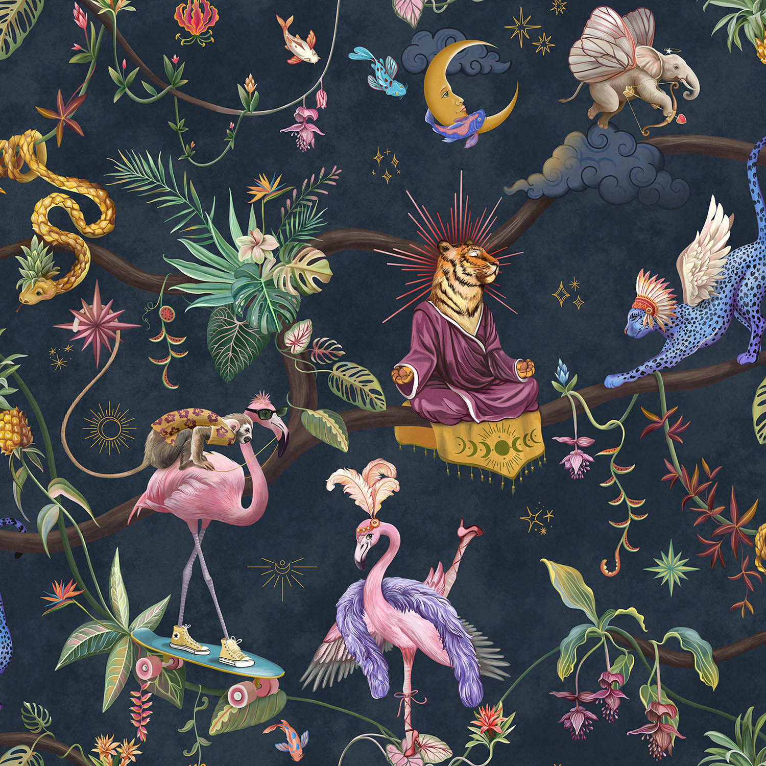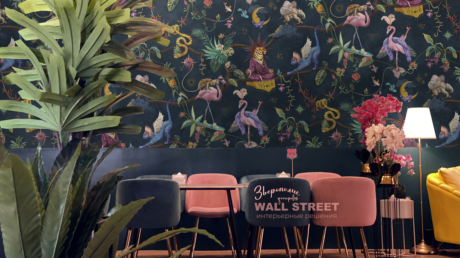 Обои из коллекций Wall Street в трех комнатах: EUPHORIA 22 в гостиной, Zoo в детской комнате, а в спальне Selva