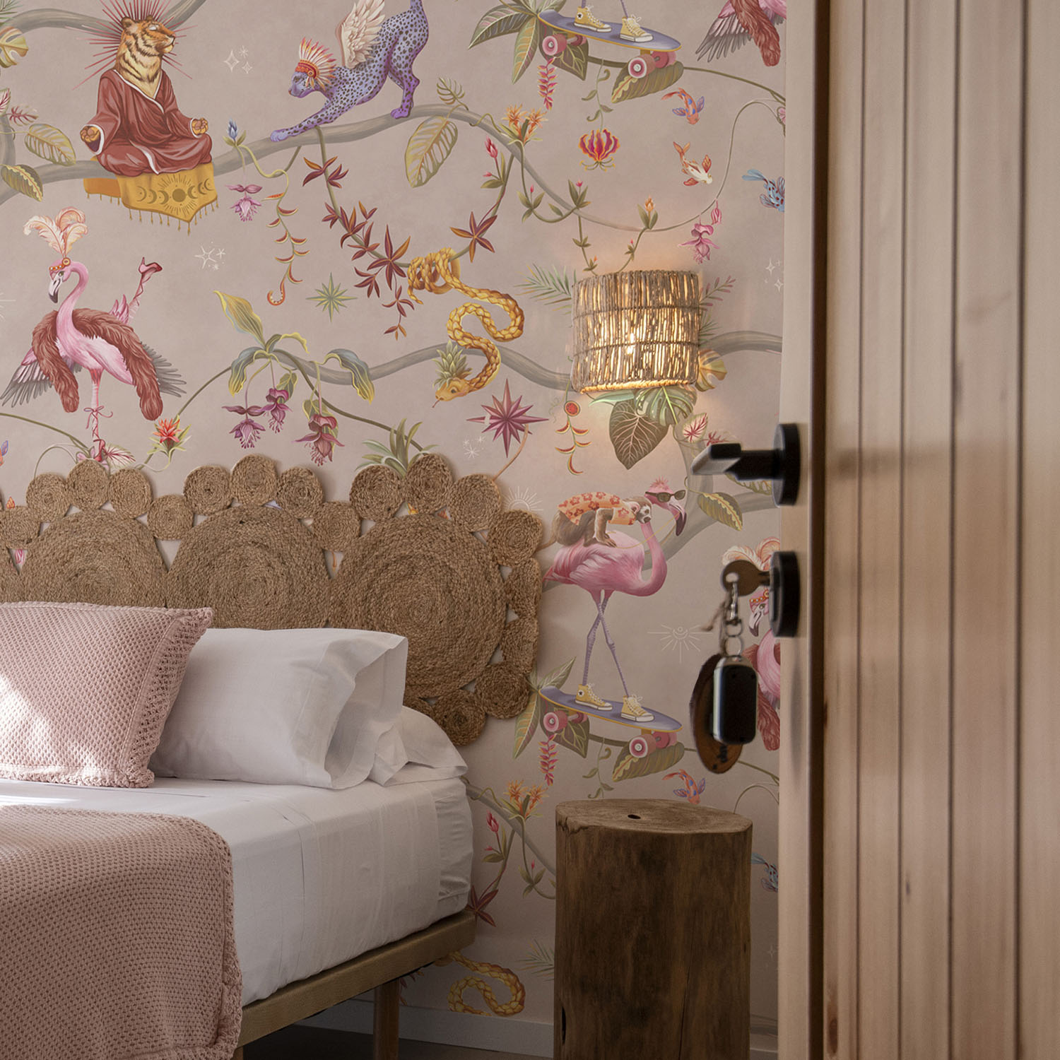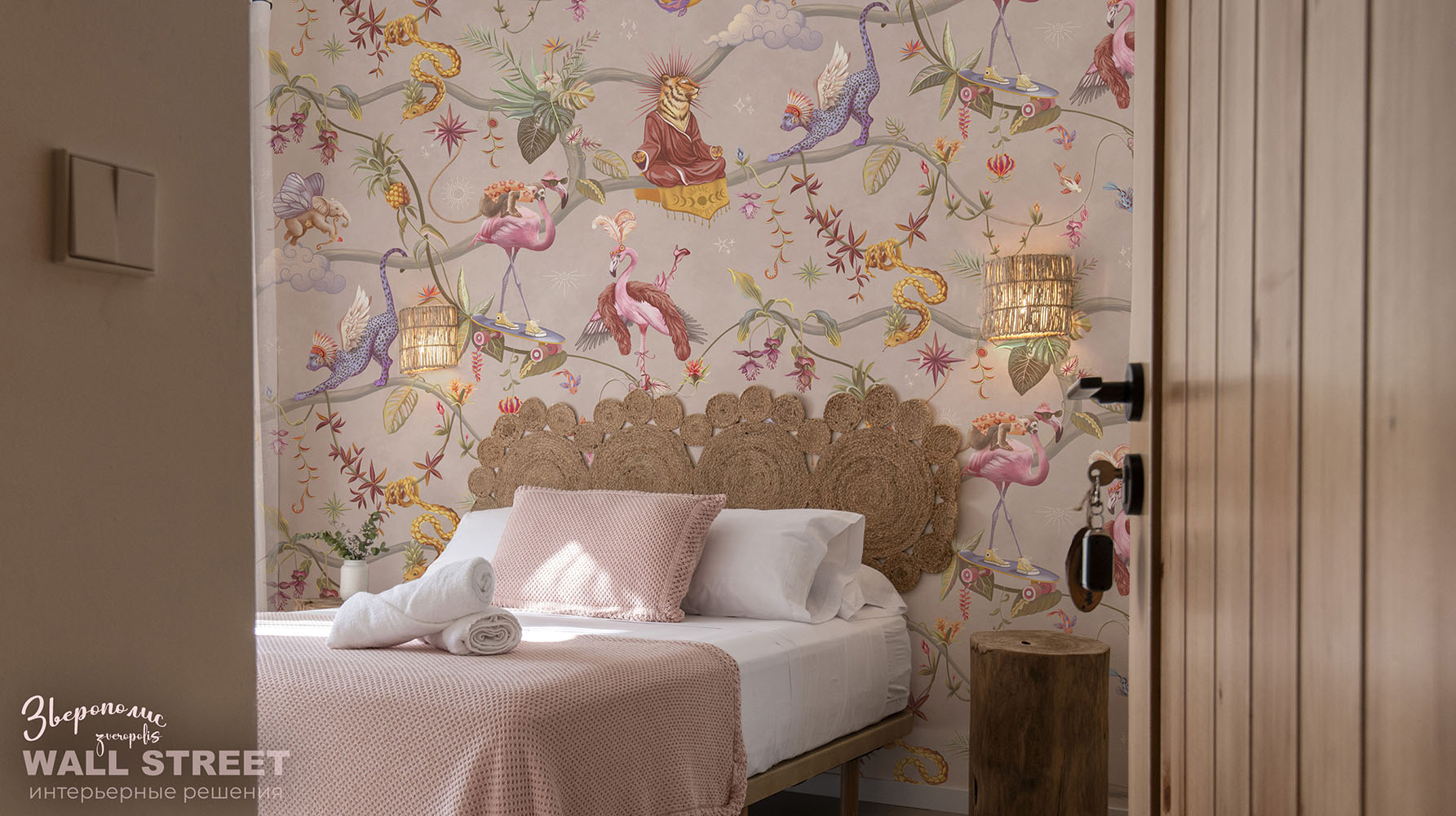 Обои из коллекций Wall Street в трех комнатах: EUPHORIA 22 в гостиной, Zoo в детской комнате, а в спальне Selva