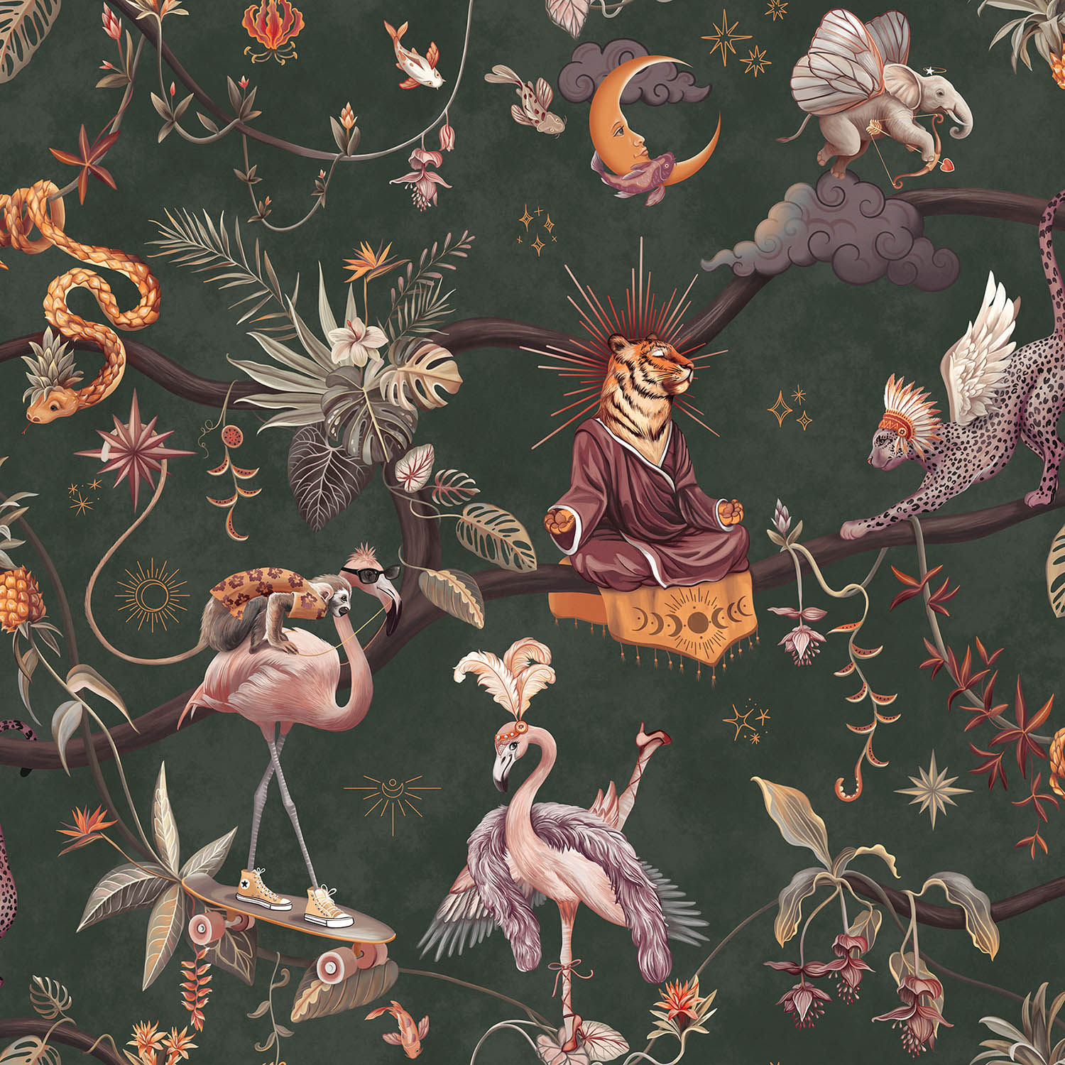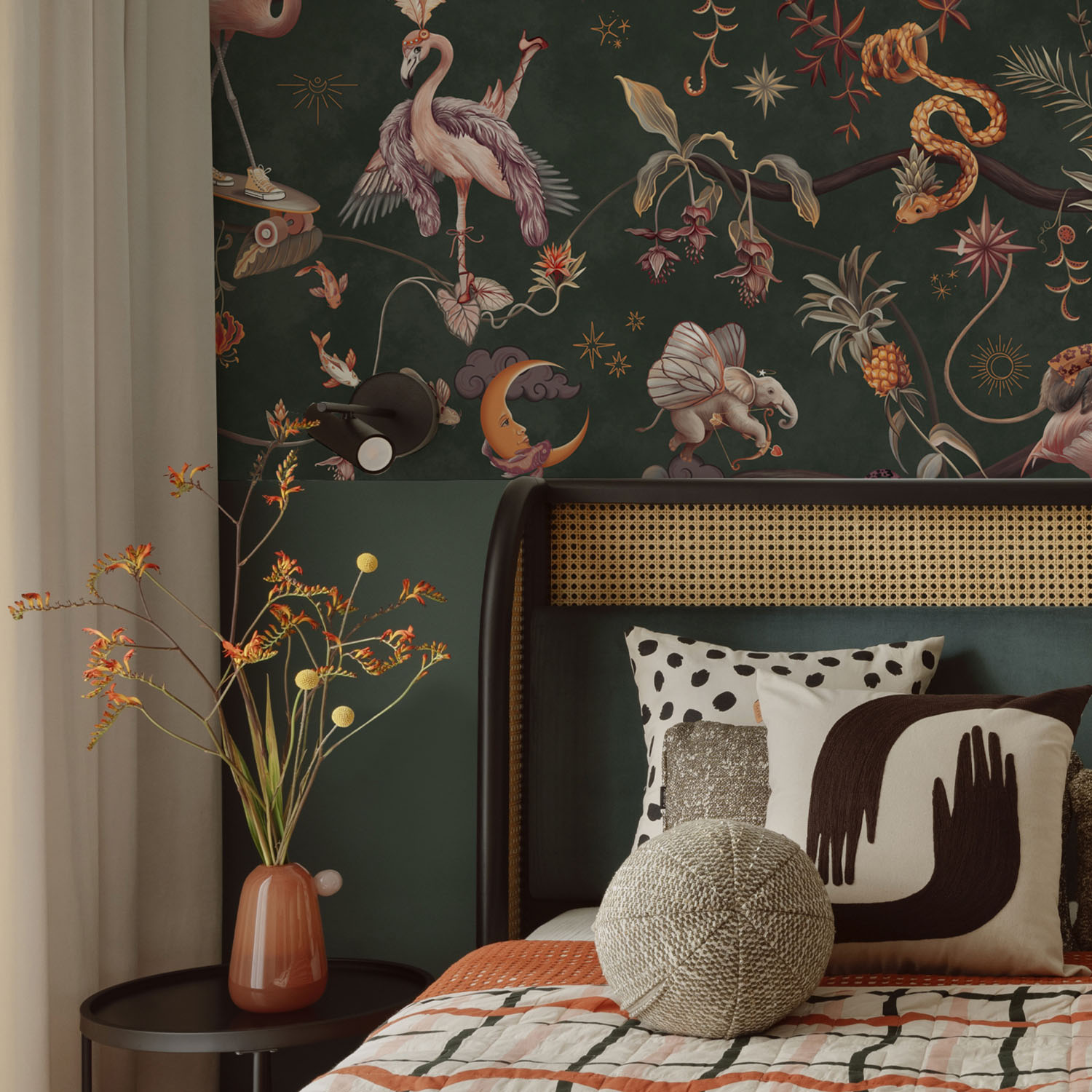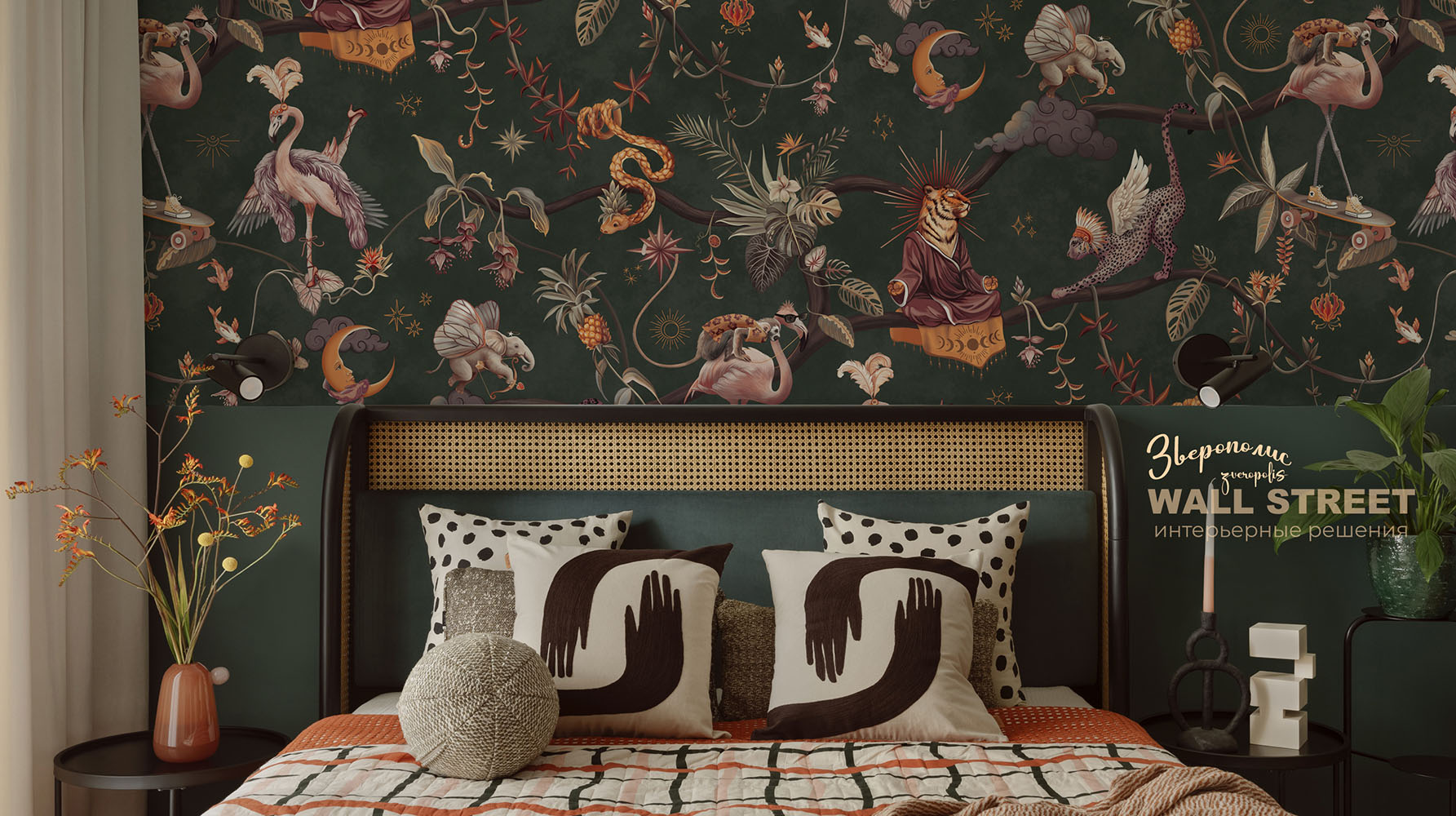 Обои из коллекций Wall Street в трех комнатах: EUPHORIA 22 в гостиной, Zoo в детской комнате, а в спальне Selva